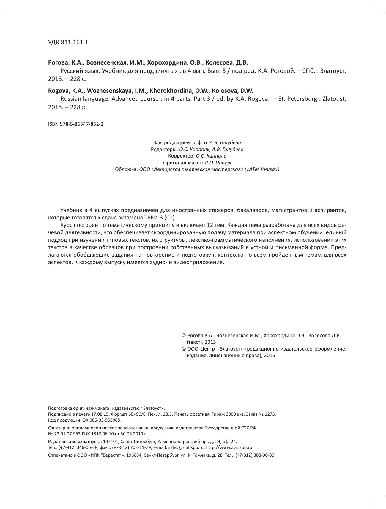 Учебник в 4 выпусках предназначен для иностранных стажеров, бакалавров, магистрантов и аспирантов, которые готовятся к сдаче экзамена ТРКИ-3 (С1).