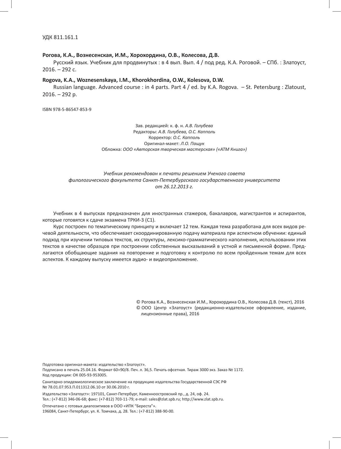 Учебник в 4 выпусках предназначен для иностранных стажеров, бакалавров, магистрантов и аспирантов, которые готовятся к сдаче экзамена ТРКИ-3 (С1).