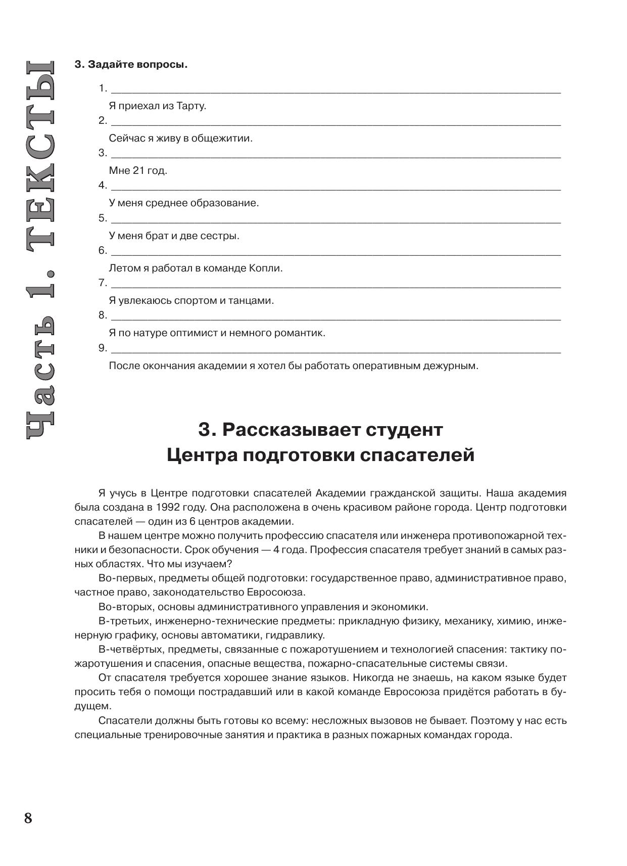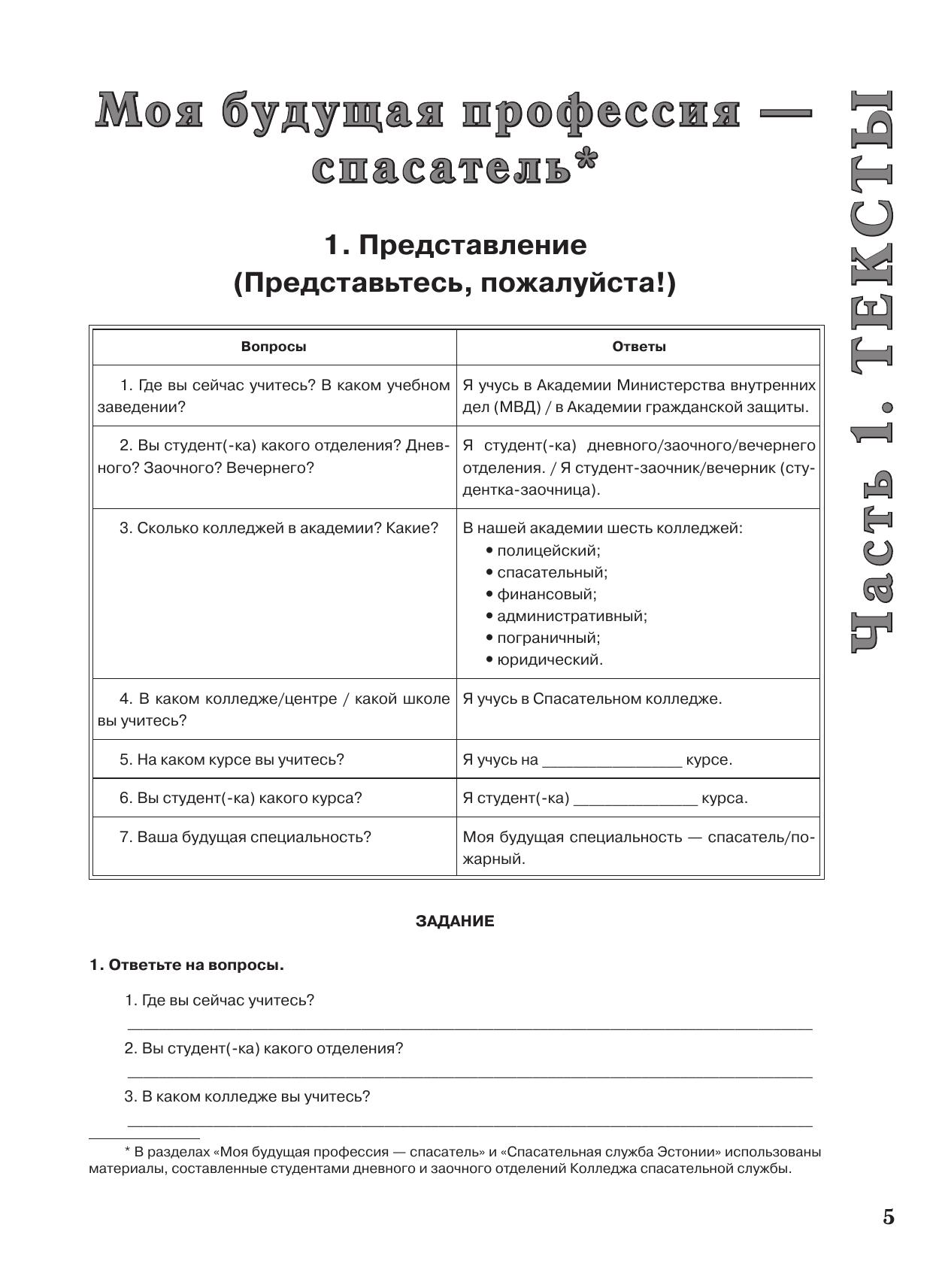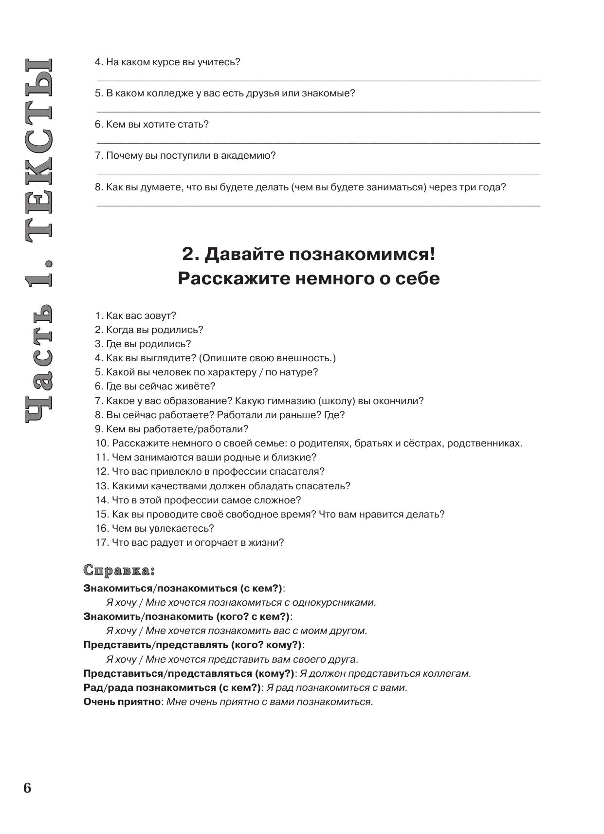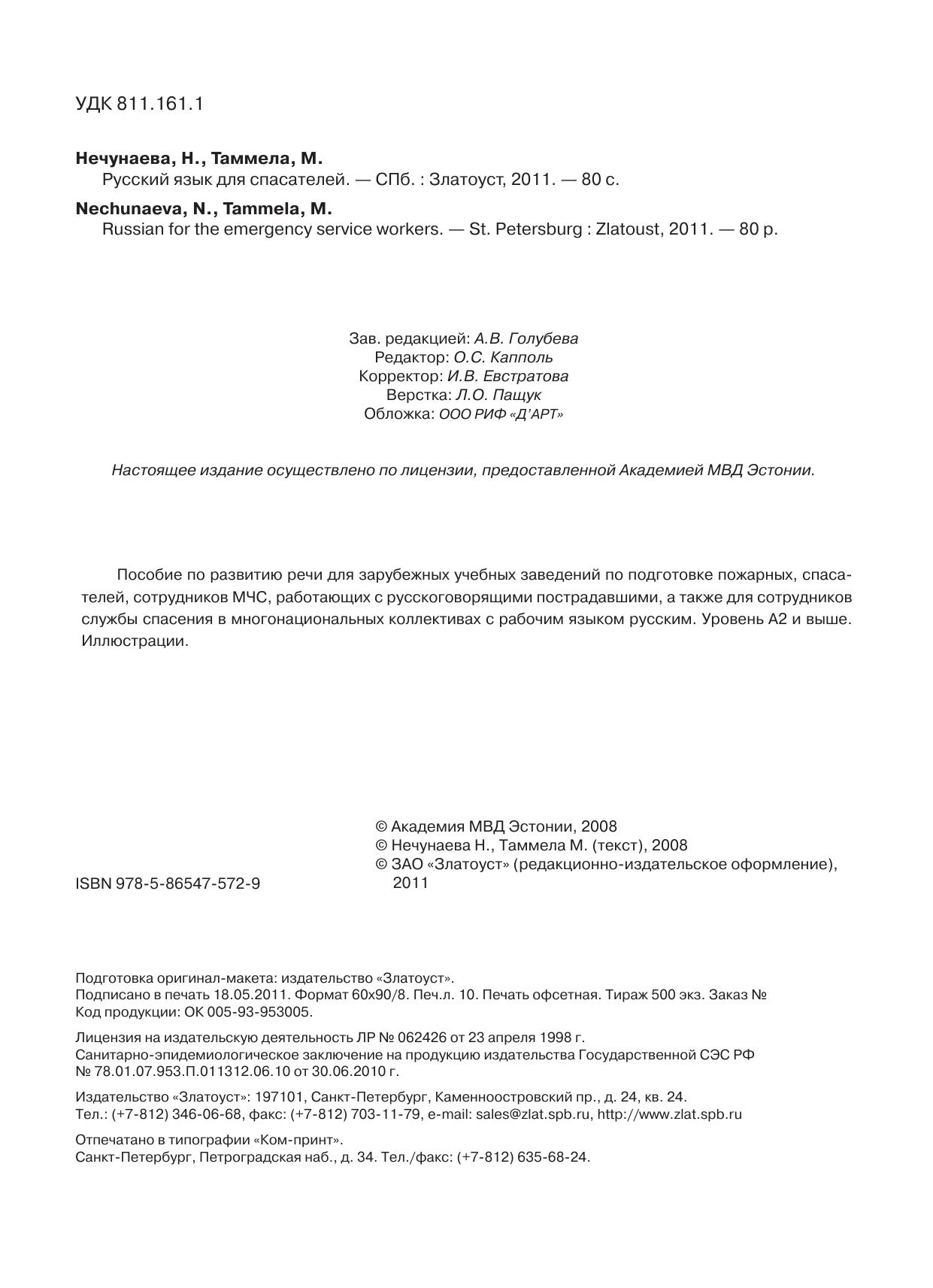 Пособие по развитию речи для зарубежных учебных заведений по подготовке пожарных, спасателей, сотрудников МЧС, работающих с русскоговорящими пострадавшими, а также для сотрудников службы спасения в многонациональных коллективах с рабочим языком русским. Уровень А2 и выше. Иллюстрации.