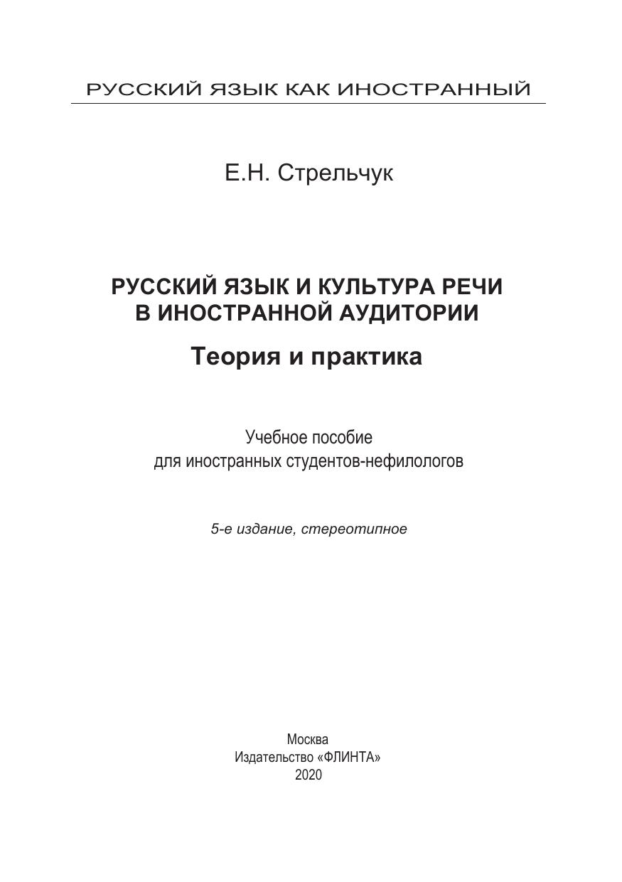 Русский язык и культура речи в иностранной аудитории: теория и практика