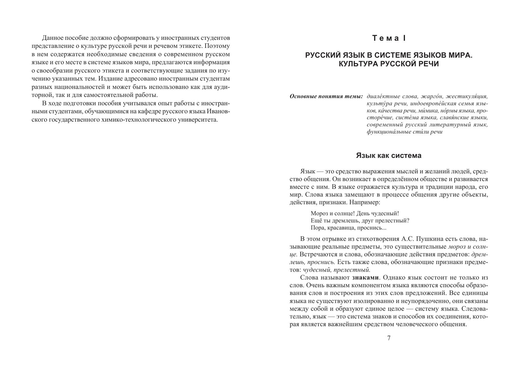 Настоящее пособие в соответствии с требованиями Государственного образовательного стандарта высшего профессионального образования включает основные понятия культуры речи, знакомит студентов с нормами современного русского литературного языка, учит навыкам научного и делового общения, расширяет представление о правилах речевого этикета. Для иностранных студентов нефилологических специальностей. Пособие может быть использовано как для аудиторной, так и для самостоятельной работы.