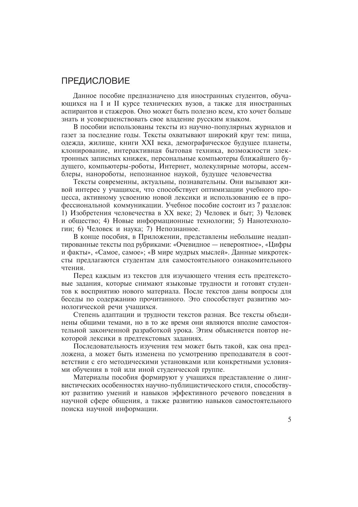 В пособии использованы тексты из современной российской периодики последних лет. Отбор материала проведен в соответствии с требованиями, разработанными Государственной образовательной системой стандартов по РКИ, и коммуникативными потребностями иностранных учащихся. Материалы адаптированы для среднепродвинутого этапа обучения иностранных студентов. Степень сложности текстов разная.