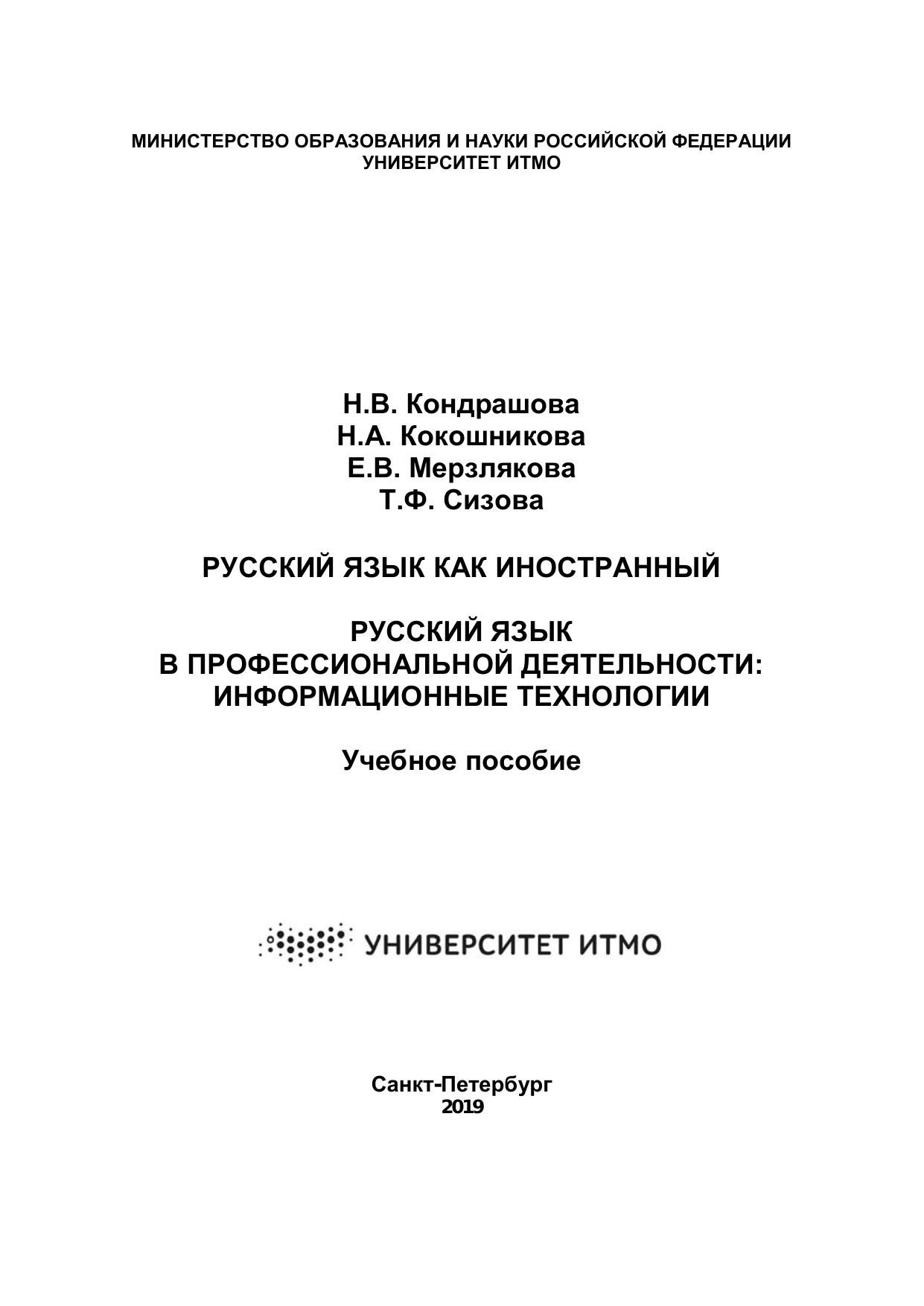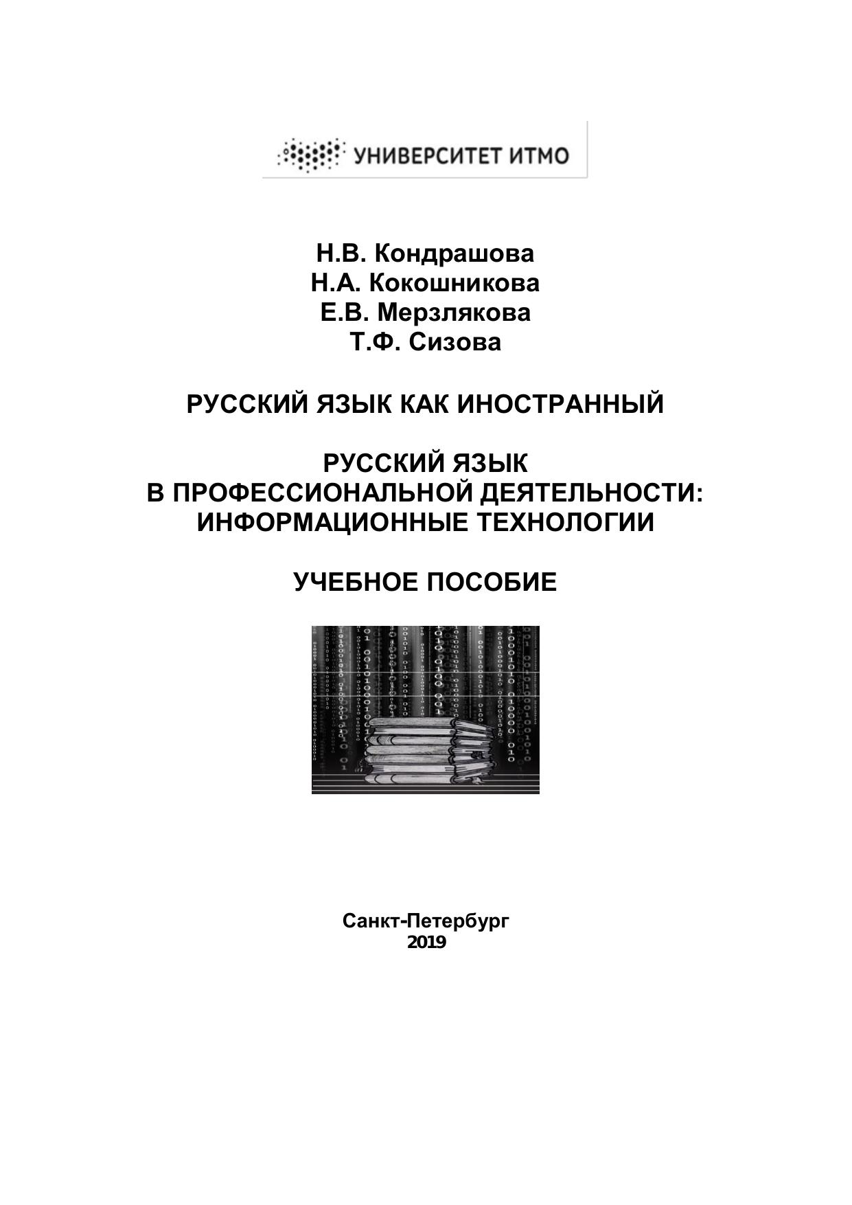 Русский язык как иностранный. Русский язык в профессиональной деятельности: информационные технологии