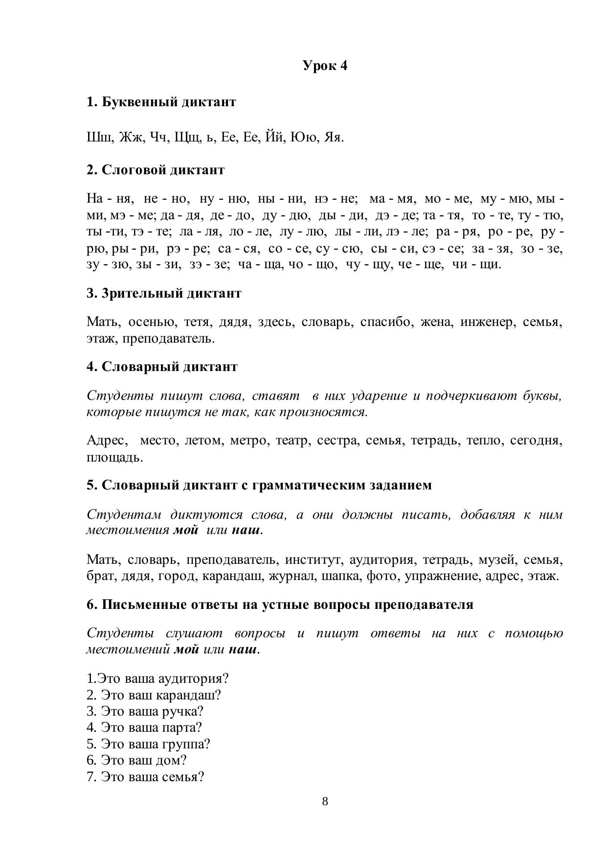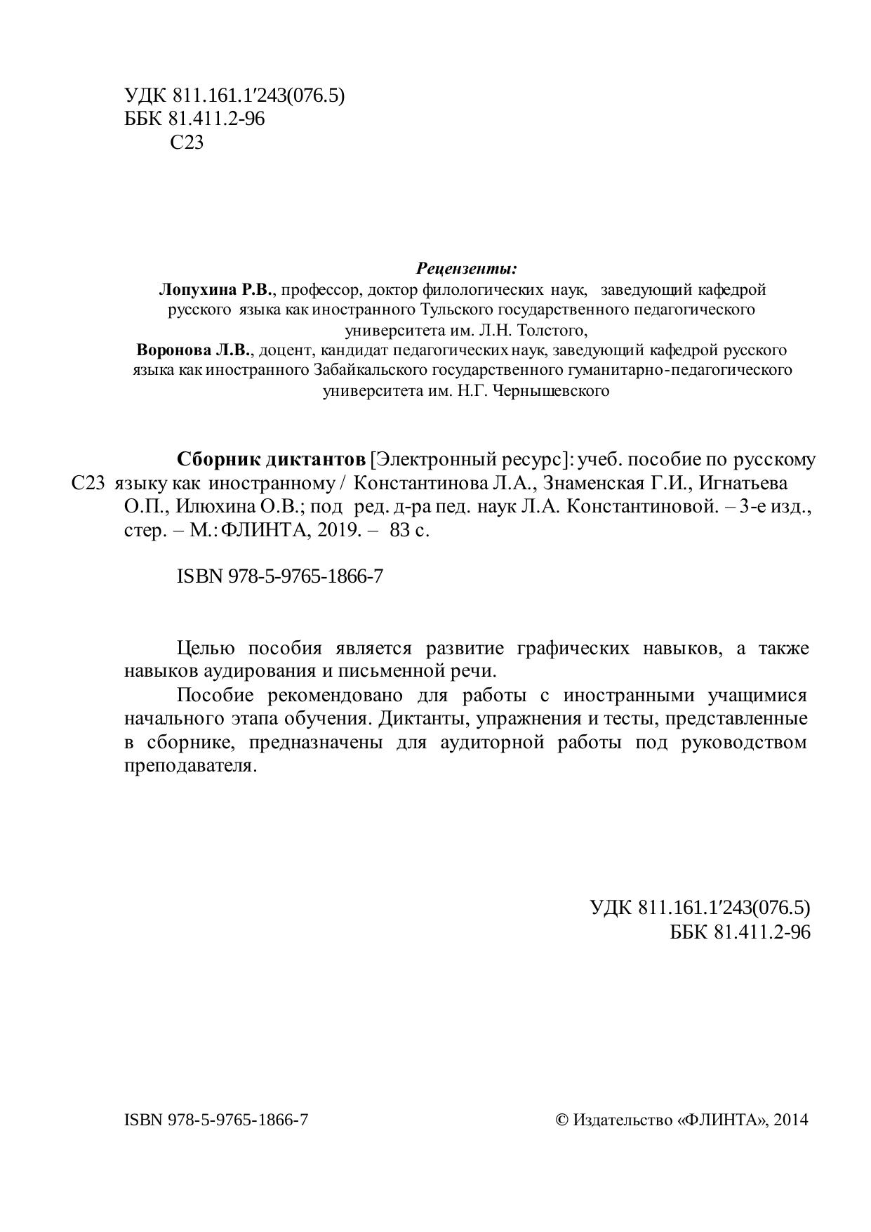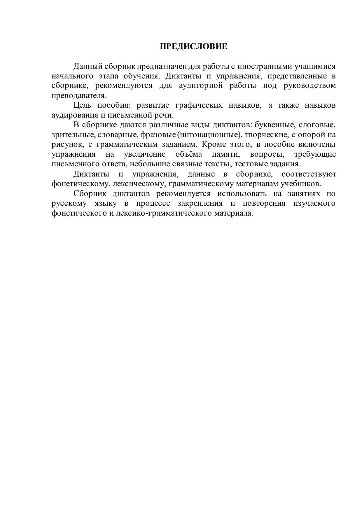 Пособие рекомендовано для работы с иностранными учащимися начального этапа обучения. Диктанты, упражнения и тесты, представленные в сборнике, предназначены для аудиторной работы под руководством