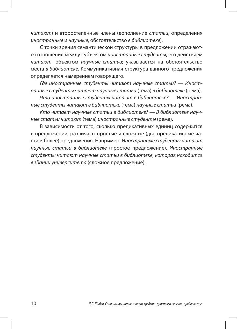 Синонимия синтаксических средств : простое и сложное предложение : Сборник заданий по русскому языку как иностранному