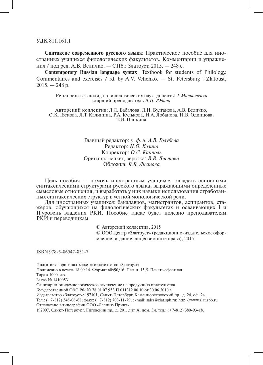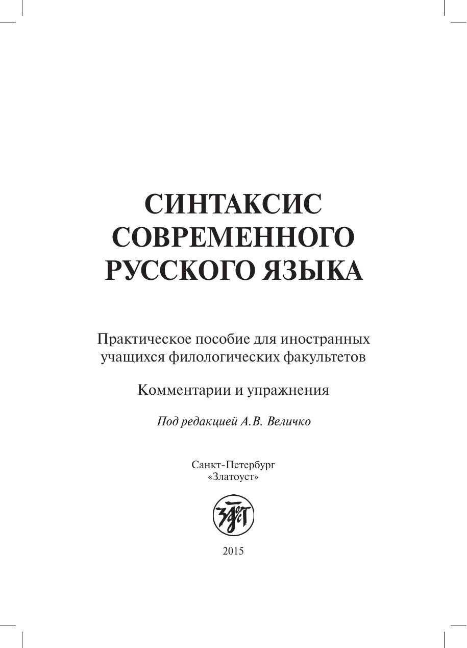 Синтаксис современного русского языка: Практическое пособие для иностранных учащихся филологических факультетов. Комментарии и упражнения