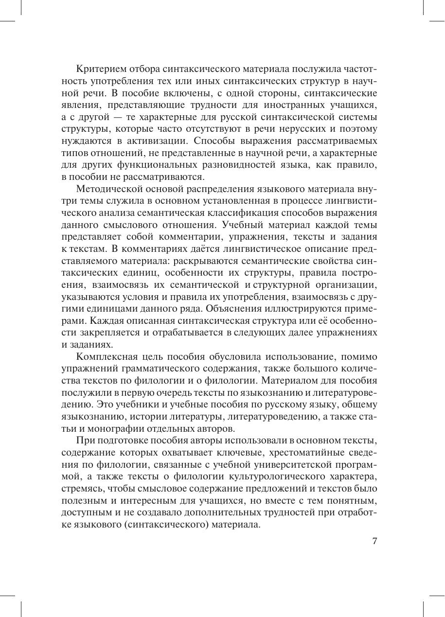 Цель пособия — помочь иностранным учащимся овладеть основными синтаксическими структурами русского языка, выражающими определённые смысловые отношения, и выработать у них навыки использования отработанных синтаксических структур в устной монологической речи.