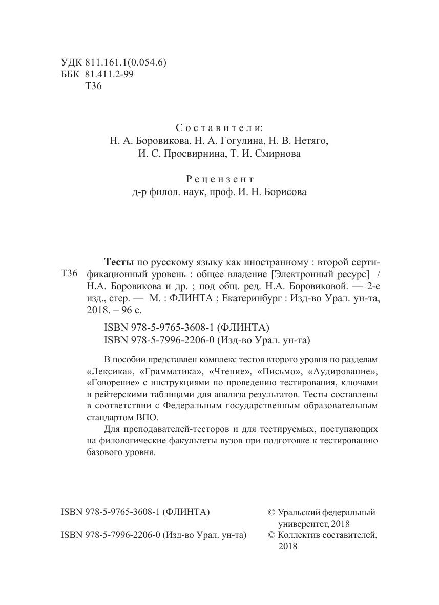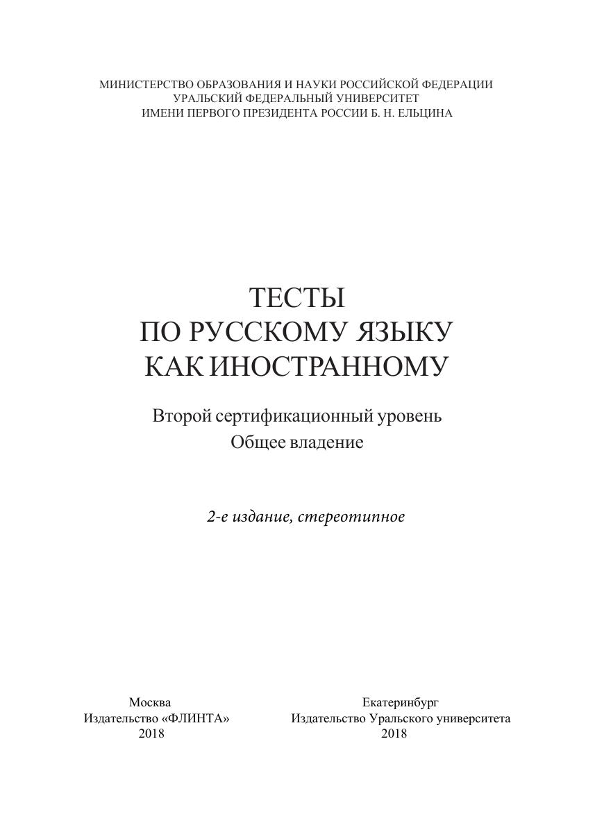 Тесты по русскому языку как иностранному. Второй сертификационный уровень. Общее владение