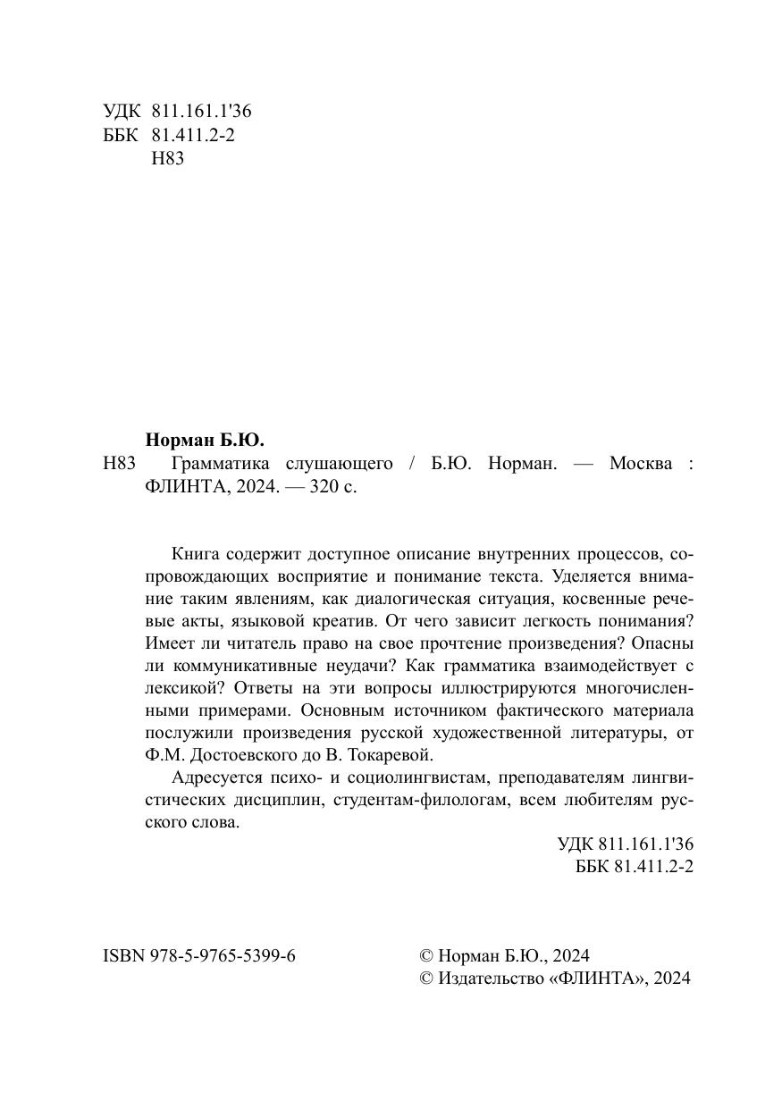 Книга содержит доступное описание внутренних процессов, сопровождающих восприятие и понимание текста. Уделяется внимание таким явлениям, как диалогическая ситуация, косвенные речевые акты, языковой креатив. От чего зависит легкость понимания? Имеет ли читатель право на свое прочтение произведения? Опасны ли коммуникативные неудачи? Как грамматика взаимодействует с лексикой? Ответы на эти вопросы иллюстрируются многочисленными примерами. Основным источником фактического материала послужили произведения русской художественной литературы, от Ф.М. Достоевского до В. Токаревой. Адресуется психо- и социолингвистам, преподавателям лингвистических дисциплин, студентам-филологам, всем любителям русского слова.