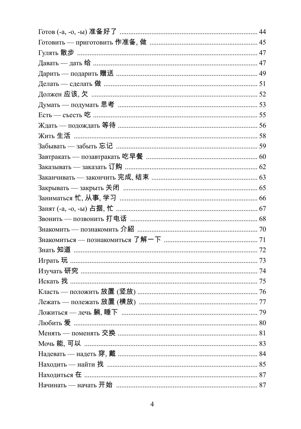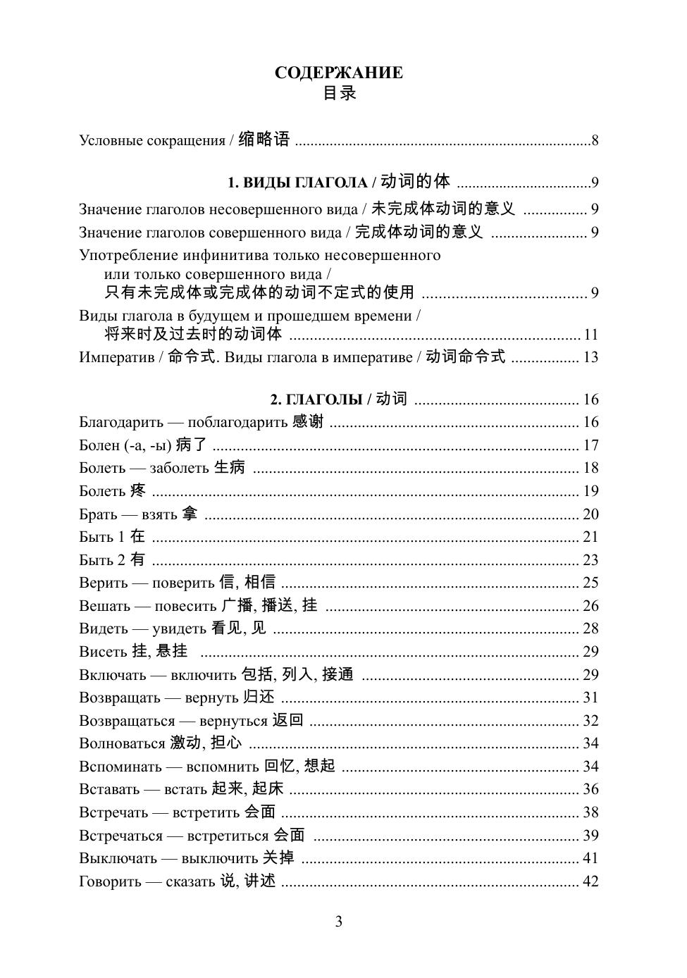 Учебное пособие по русским глаголам адресовано студентам, которые начинают изучать русский язык. Глагольная статья включает спряжение глаголов совершенного и несовершенного вида с простыми примерами, благодаря которым студент учится различать совершенный и несовершенный вид, правильно ставить вопросы и использовать падежные окончания. В книге содержатся таблицы, объясняющие употребление видов глагола. В пособие включены некоторые краткие прилагательные и краткие причастия.