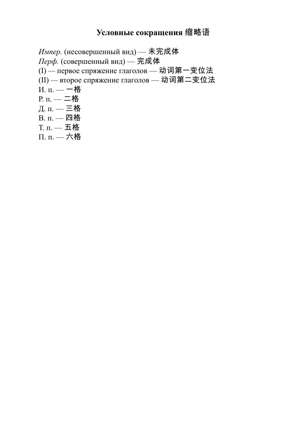 这本俄语动词的参考教材适用于刚开始学习俄语的学生们。书中正文包含完成体和未完成体动词的变位并配以简单的例子。因此,学生学会区分动词的未完成体和完成体,正确提出问题和使用格的词尾。 该书包含解释动词使用类别的表格。