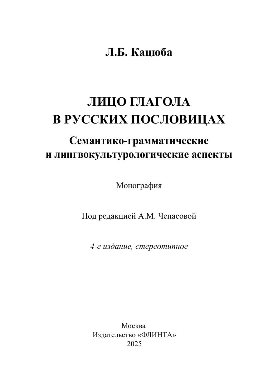 Лицо глагола в русских пословицах: семантико-грамматические и лингвокультурологические аспекты