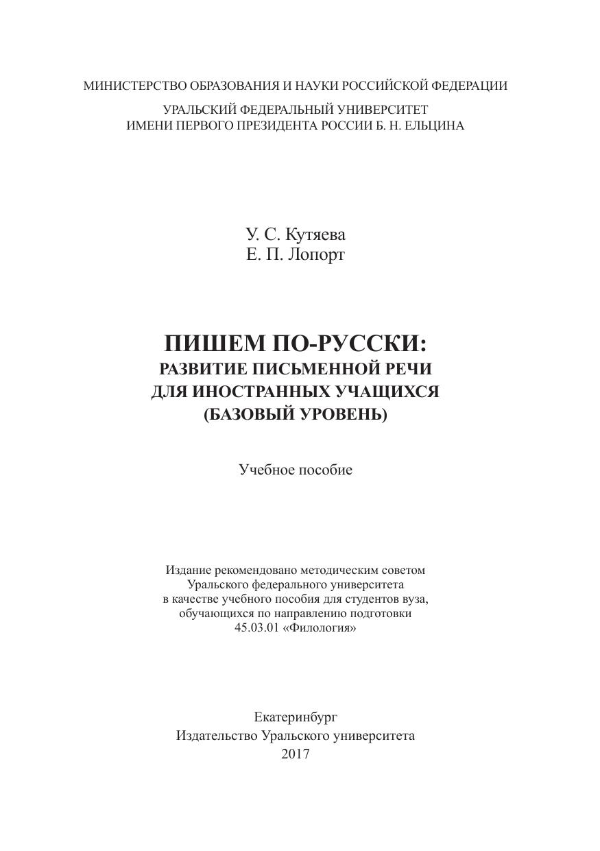 Пишем по-русски: развитие письменной речи для иностранных учащихся (базовый уровень)