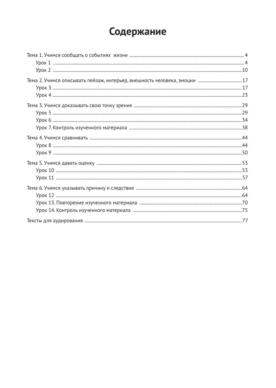Пособие по развитию письменной речи адресовано иностранным учащимся гуманитарных специальностей. Цель пособия — систематизировать знания учащихся относительно важных грамматических особенностей русской речи и отработать навыки грамотного письма, а также развить навыки изложения различных типов текстов и создания собственного текста в заданной ситуации. Пособие предназначено для учащихся, успешно сдавших ТРКИ-1.