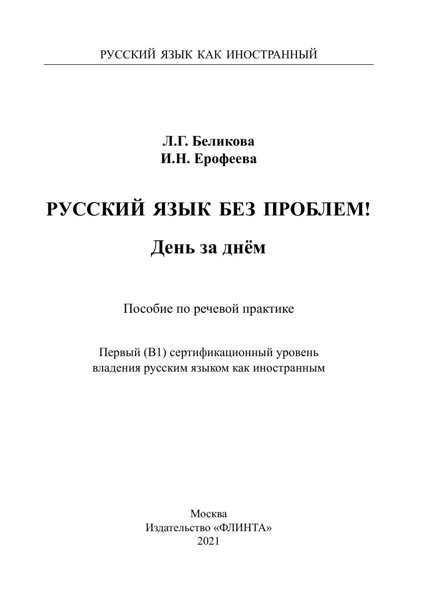 Русский язык без проблем! День за днём: пособие по речевой практике: первый (B1) сертифицированный уровень владения русским языком как иностранным