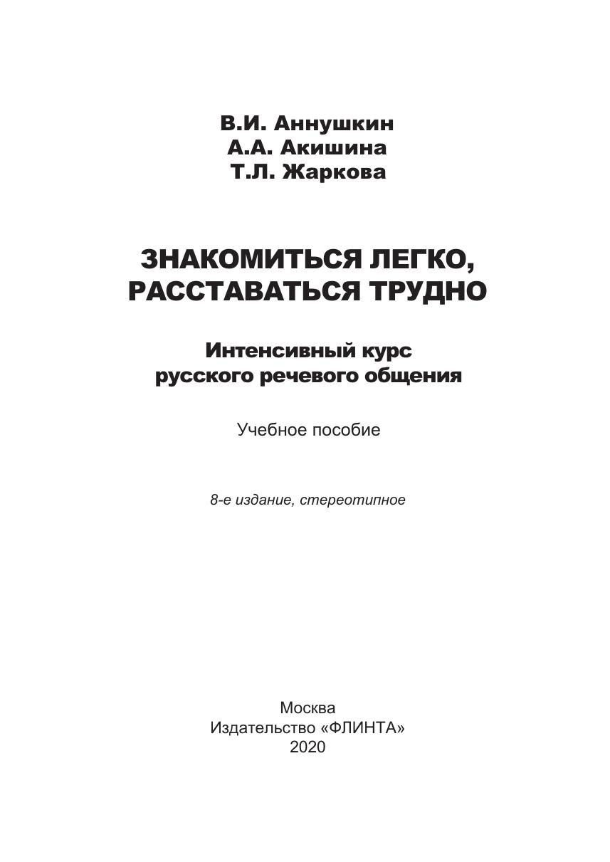 Знакомиться легко, расставаться трудно. Интенсивный курс русского речевого общения
