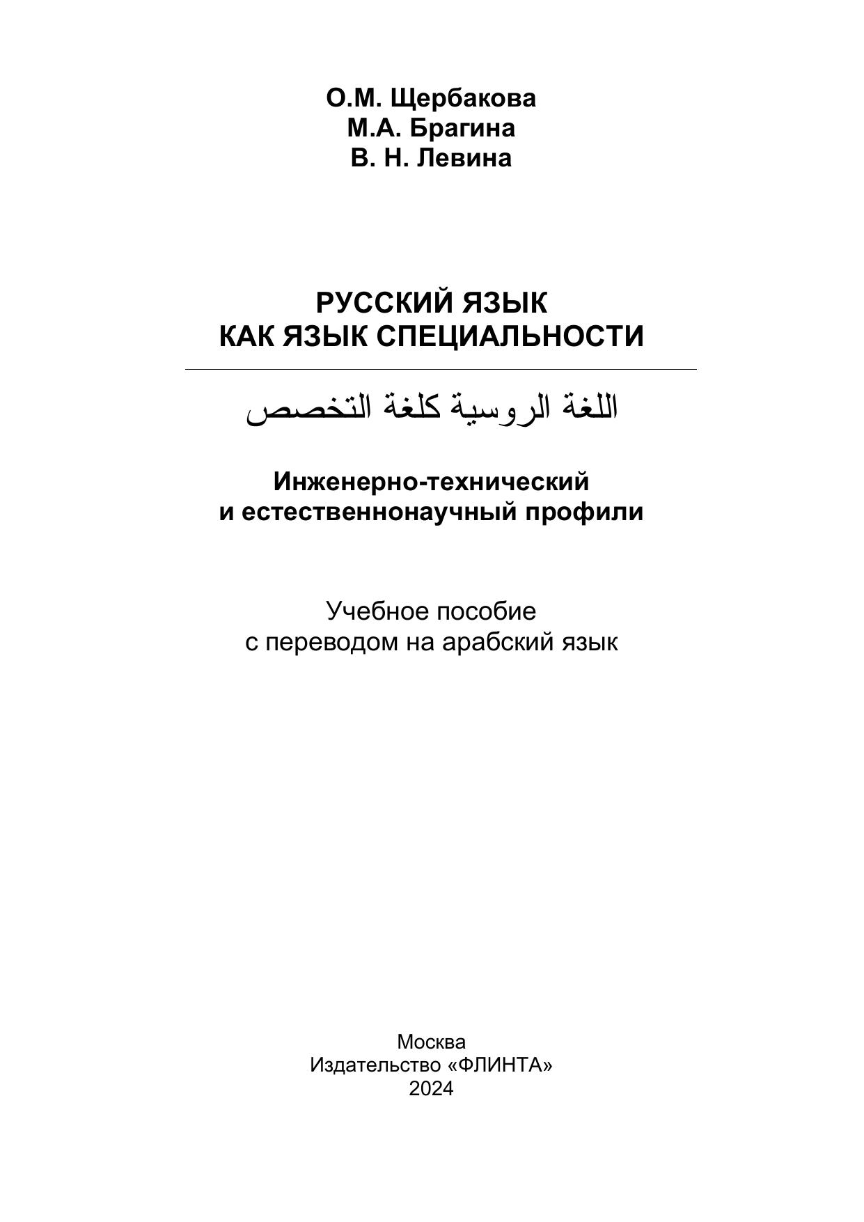 Русский язык как язык специальности / اللغة الروسیة آلغة التخصص (инженерно-технический и естественнонаучный профили)