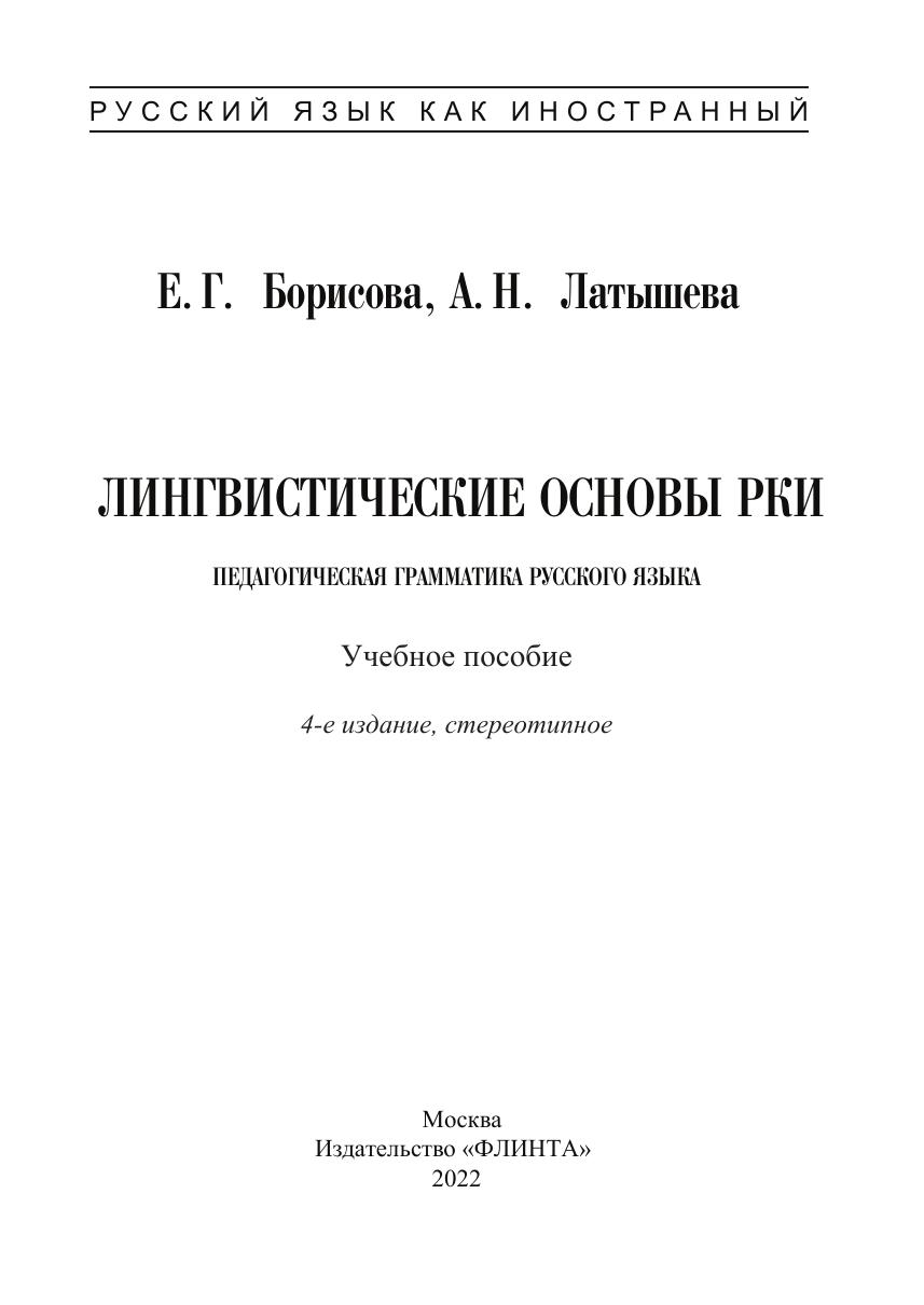 Лингвистические основы РКИ. Педагогическая грамматика русского языка