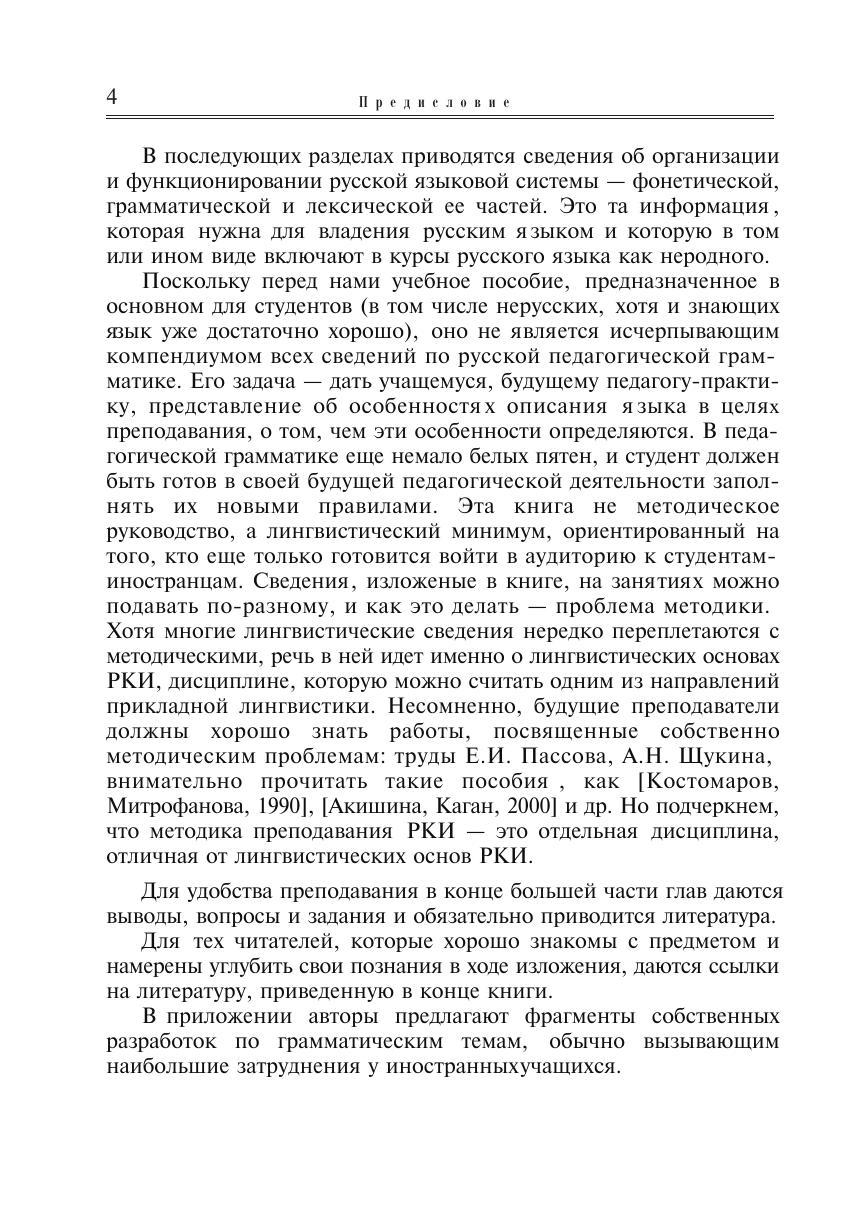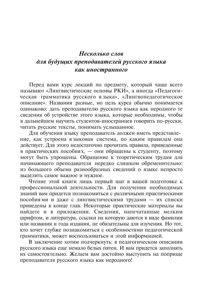 В основу книги положен курс лекций по русскому языку как иностранному (РКИ), который был прочитан студентам, магистрам и преподавателям РКИ, повышающим свою квалификацию. В первой главе кратко изложены основные черты направления, которое, если говорить о разных языках, можно назвать педагогической лингвистикой. Книга даёт преподавателям сведения об организации и функционировании русской языковой системы – фонетической, грамматической, лексической её частей. Это та информация, которая нужна для владения русским языком и которую в том или ином виде включают в курсы РКИ.