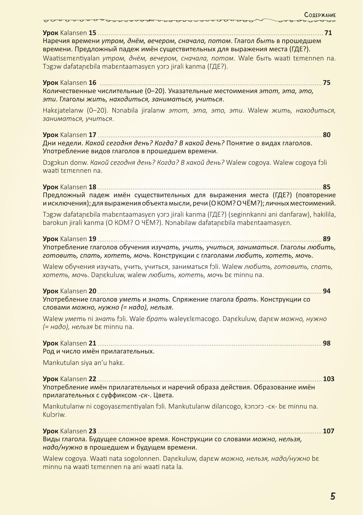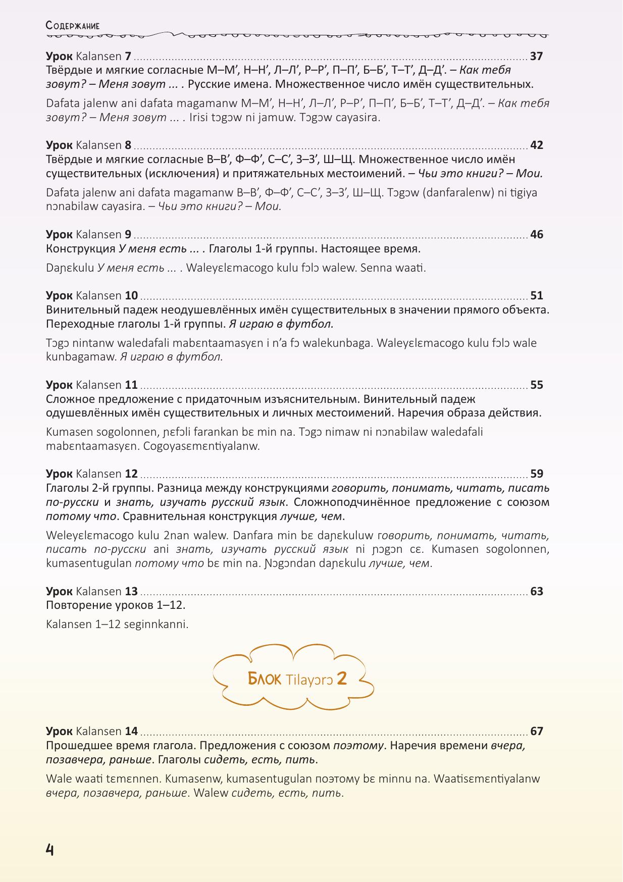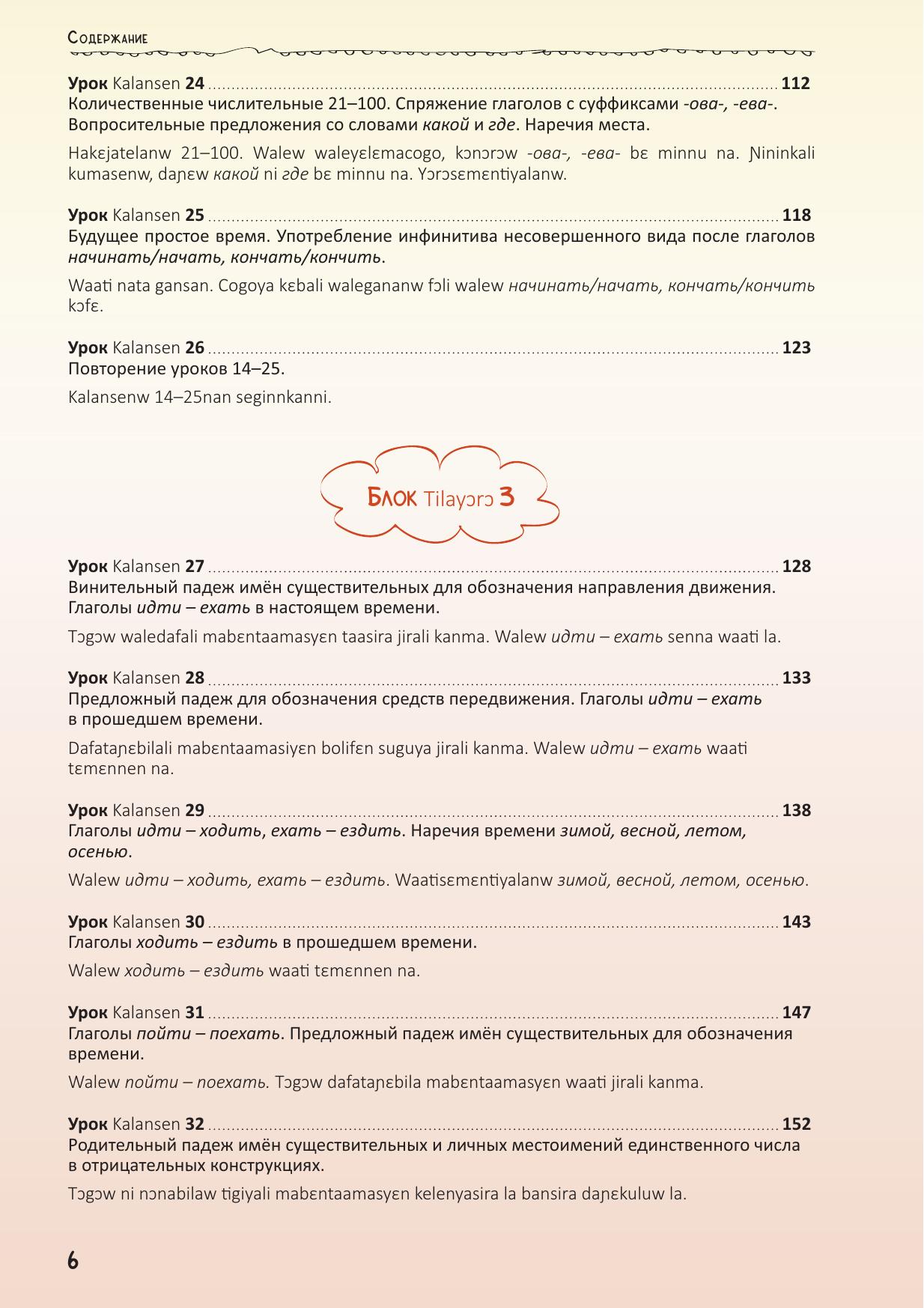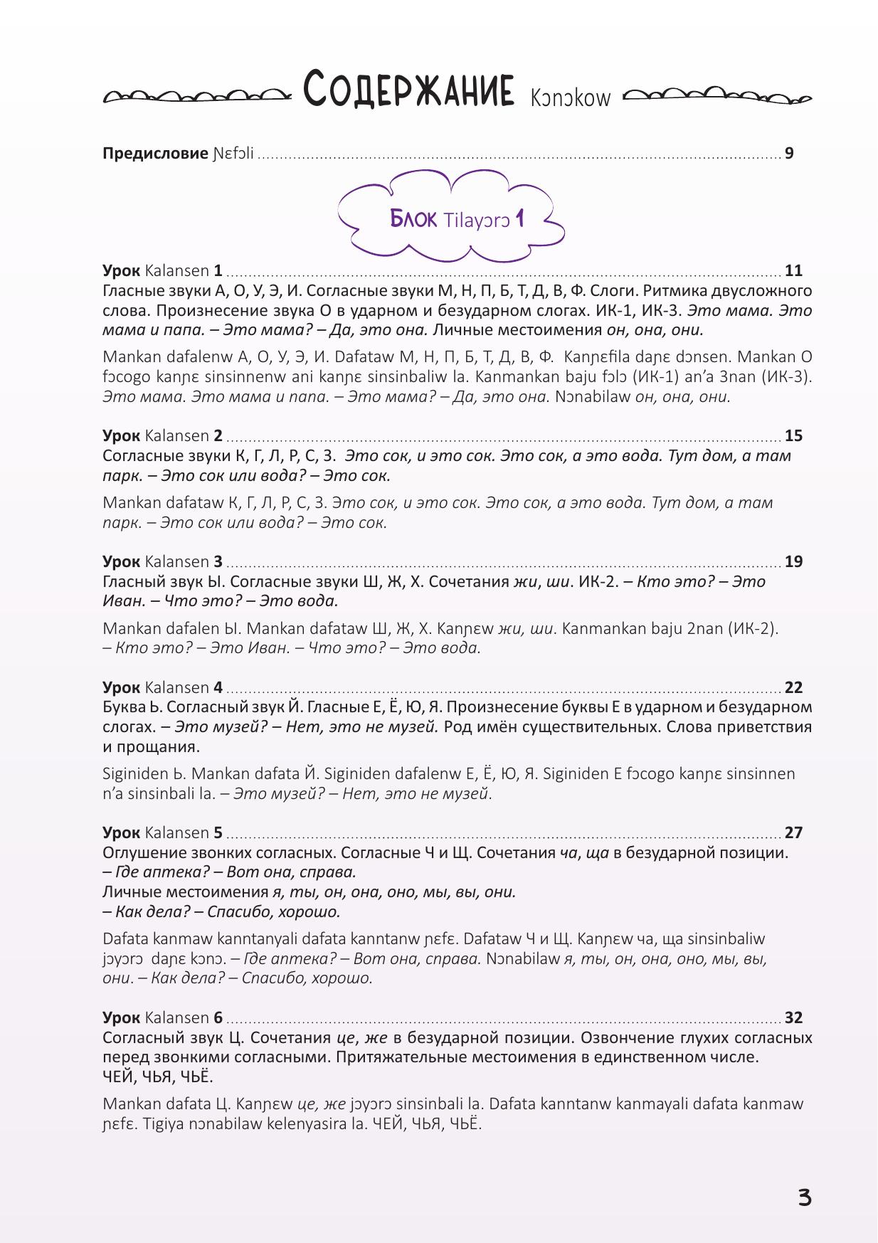 Учебно-методический комплекс "Мы изучаем русский" адресован иностранным учащимся, говорящим на бамбара и начинающим изучать русский язык. УМК состоит из учебника и рабочей тетради, которые содержат учебный материал, направленный на формирование коммуникативной компетенции в рамках Элементарного уровня (А1) владения русским языком, и включает итоговый тест данного уровня, составленный в соответствии со стандартами ТРКИ. Инструкции к заданиям, а также ряд заданий и комментариев приводятся на бамбара. УМК включает электронное приложение, содержащее аудиофайлы. Они доступны по QR- кодам, размещенным возле заданий на аудирование. Учебник и рабочая тетрадь содержат красочные иллюстрации, способствующие визуализации изучаемого материала. Учебно-методический комплекс "Мы изучаем русский" рассчитан на 120 академических часов и может быть использован в высших и общеобразовательных учебных заведениях, на языковых курсах, а также для самостоятельного изучения языка.