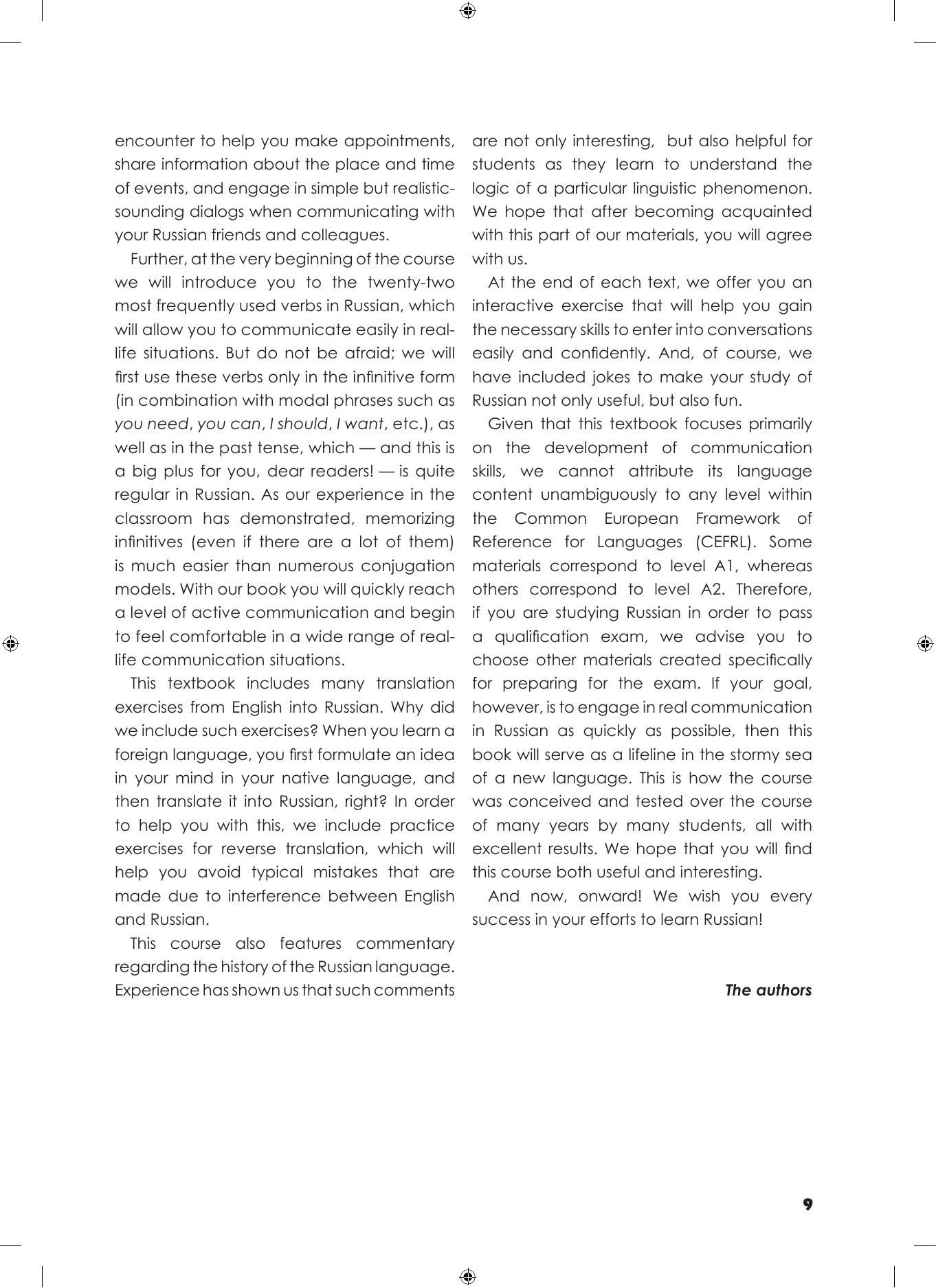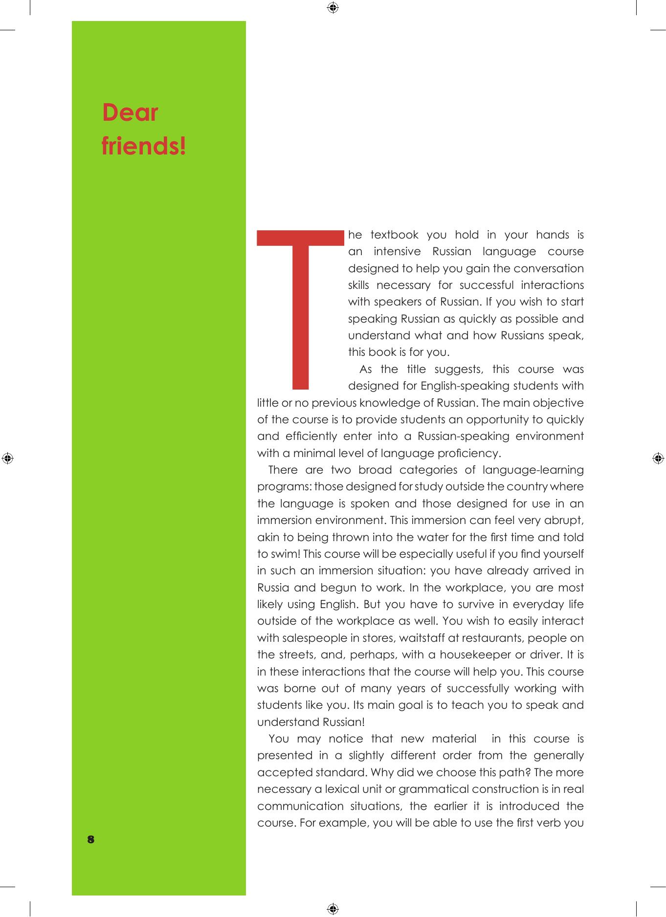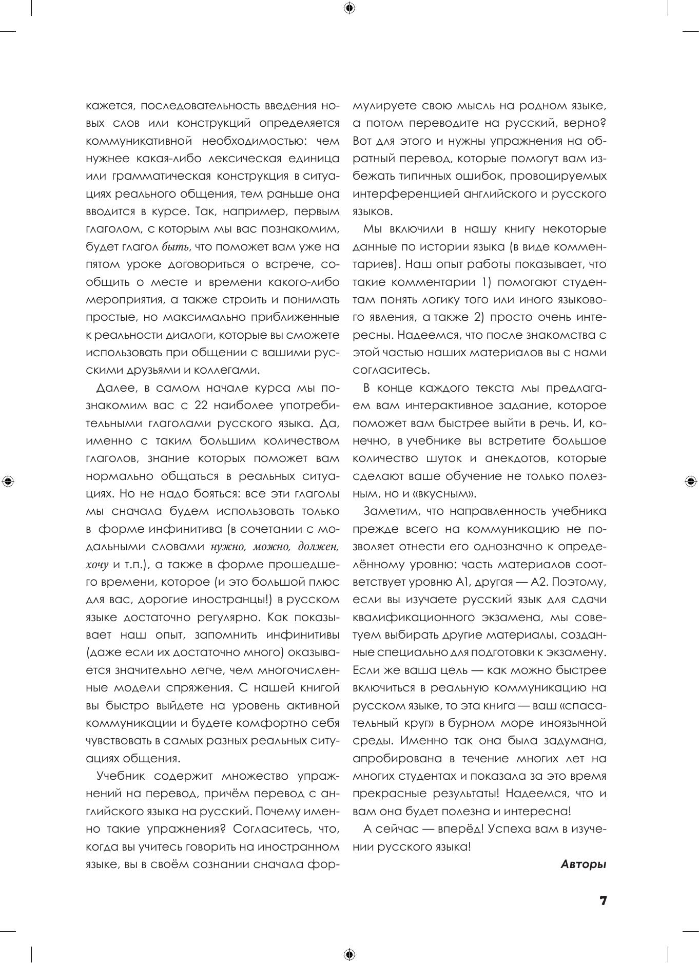 Книга ориентирована на иностранцев, для которых английский язык является родным или языком-посредником и которые ранее не изучали русский язык.