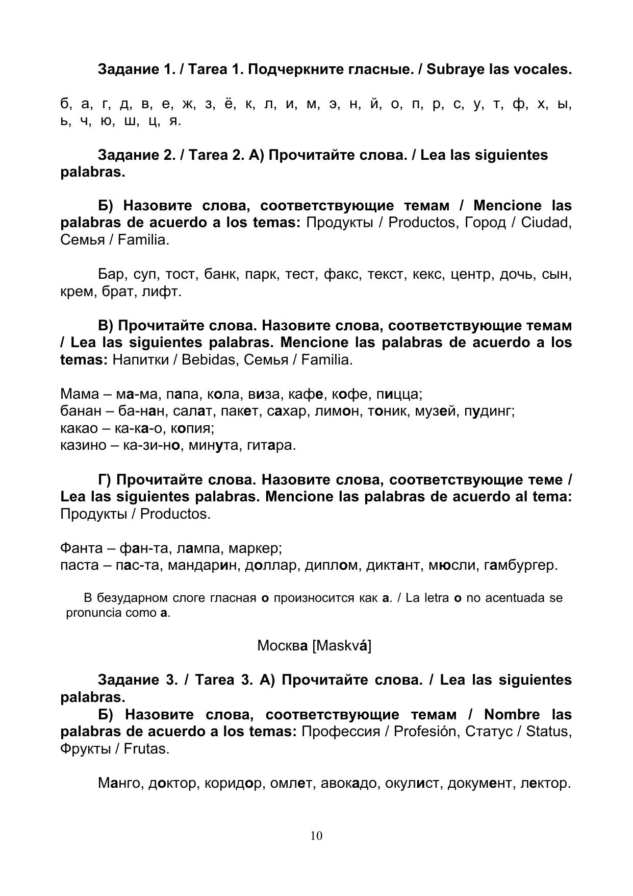 Для испаноговорящих студентов, впервые приступающих к изучению русского языка.