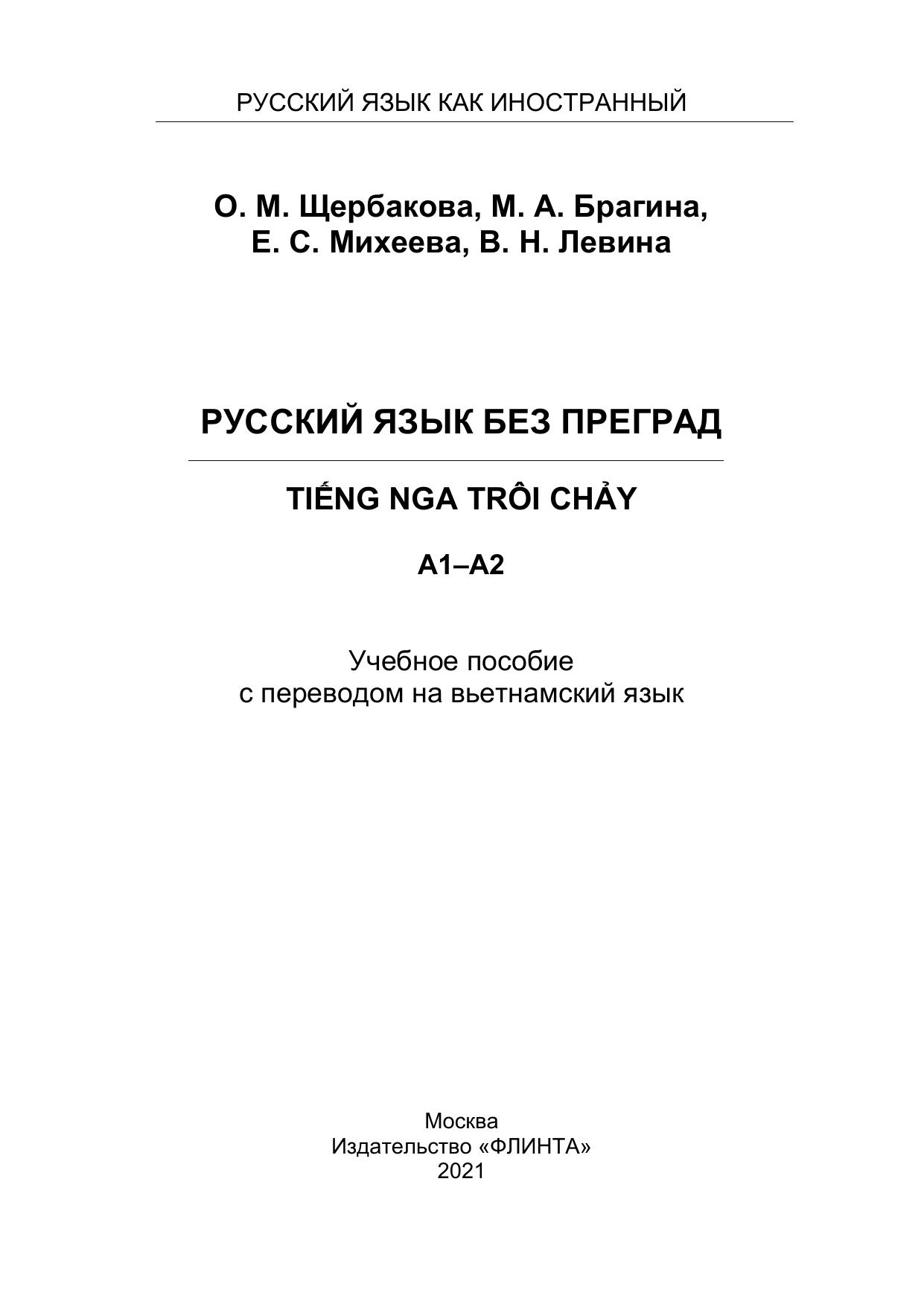 Учебный комплекс «Русский язык без преград / TiẾng nga trôi chẢy» включает учебное пособие и рабочую тетрадь, содержащие материал элементарного уровня владения русским языком как иностранным (А1). В учебном пособии особая нестандартная организация учебного материала, позволяющая в сжатые сроки усвоить лексический и грамматический материал и способствующая активизации речевой деятельности учащихся. В пособии реализованы современные подходы к обучению русскому языку иностранцев: интенсивность, коммуникативность, практическая направленность и учёт родного языка. Грамматические комментарии, диалоги, упражнения сопровождаются переводом на вьетнамский язык. По пособию можно работать как с преподавателем, так и самостоятельно.