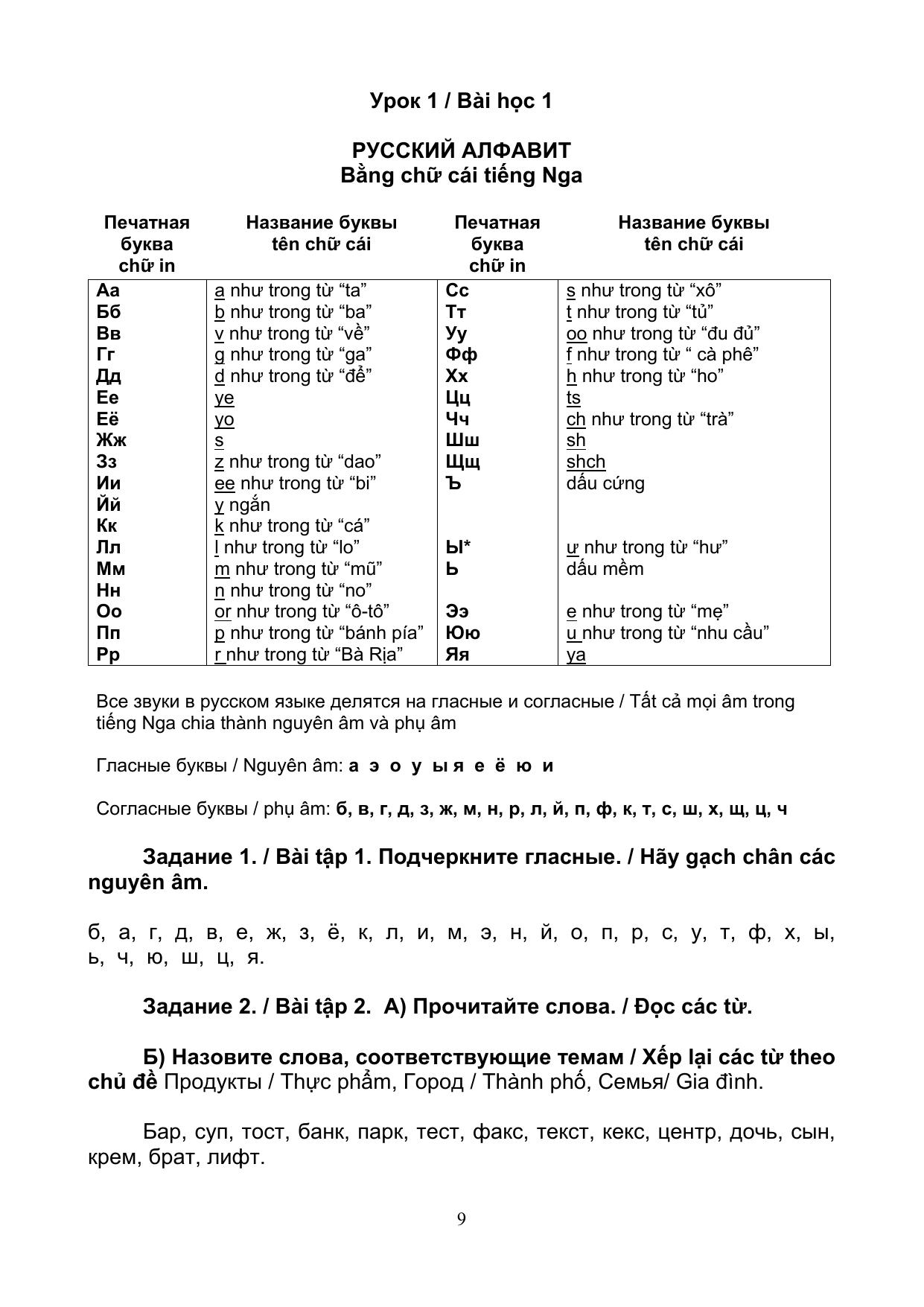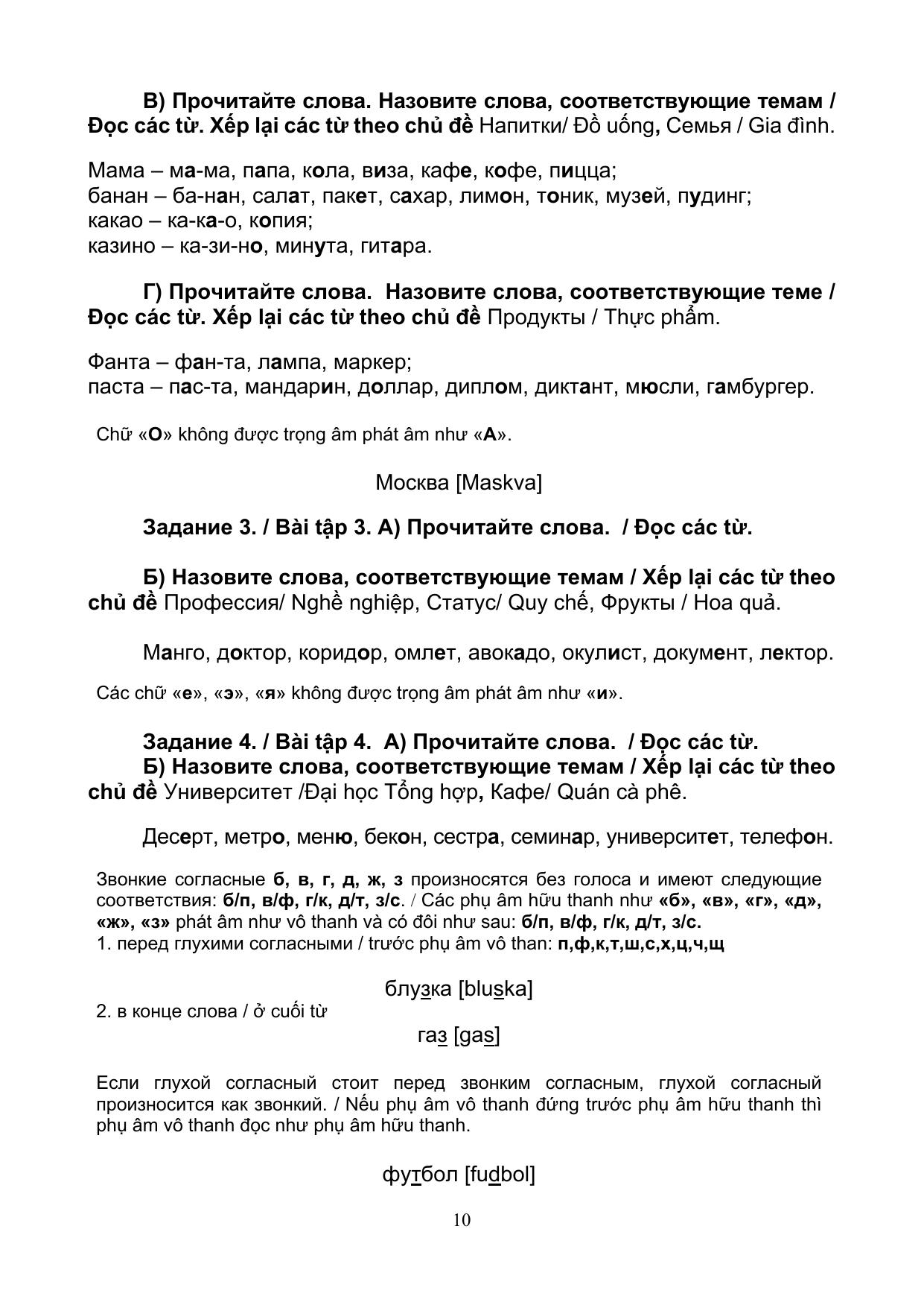 Для студентов, говорящих на вьетнамском языке и впервые приступающих к изучению русского языка.