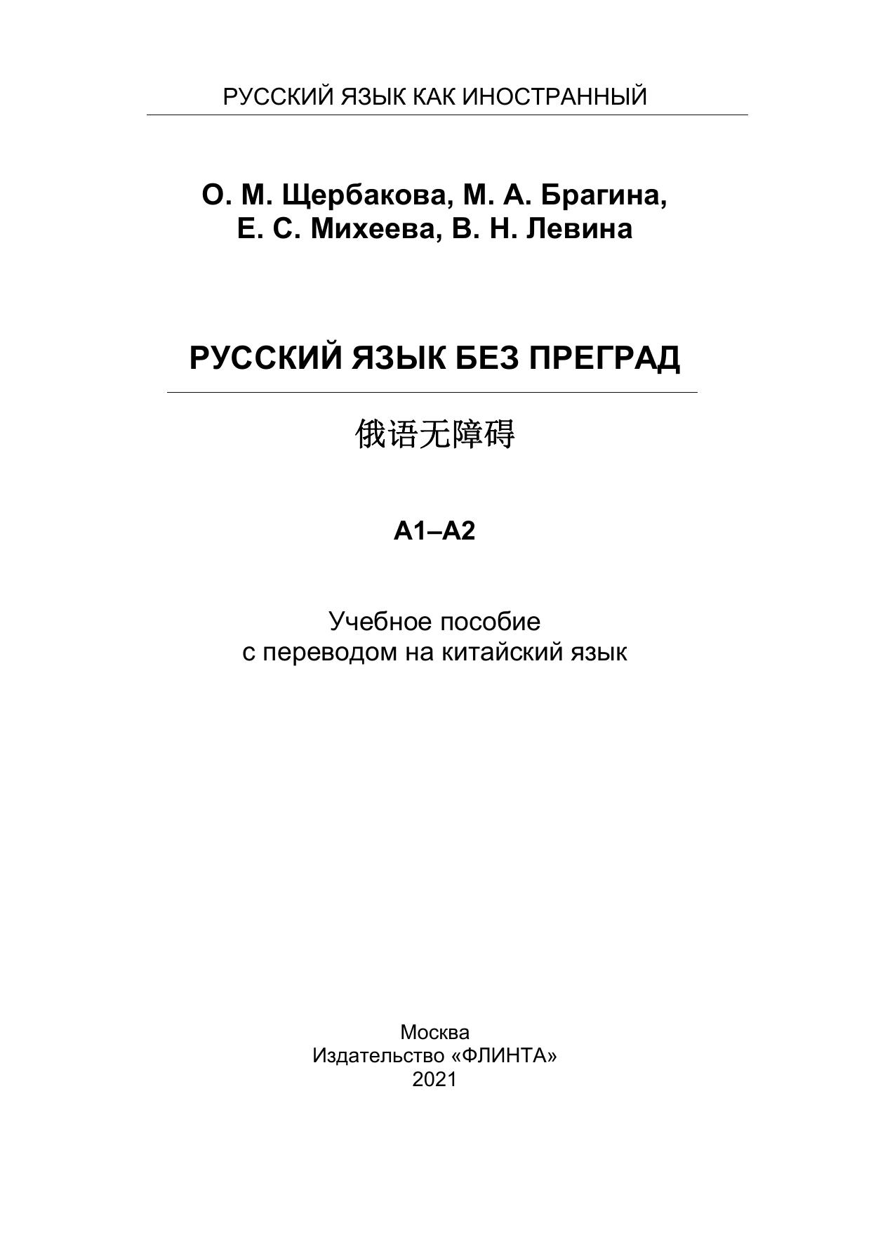Русский язык без преград = 俄语无障碍. А1-А2