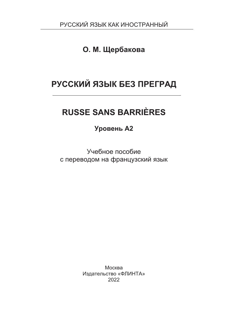 Русский язык без преград / Russe sans barrières (французский). А2