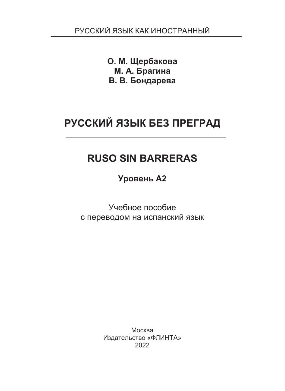 Русский язык без преград / Ruso sin barreras» (испанский). А2