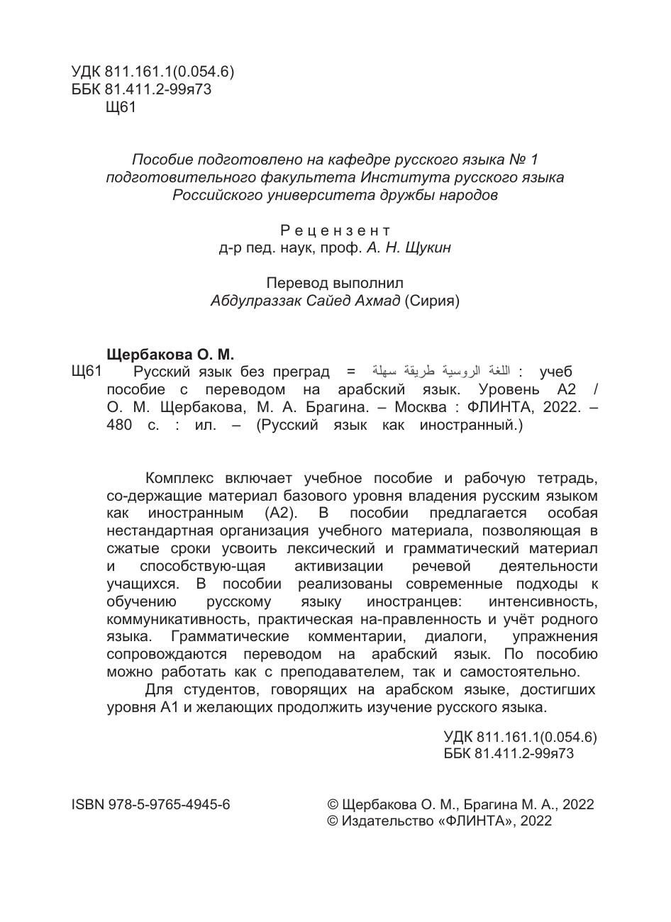 Русский язык без преград / اللغة الروسية بطريقة سهلة » (арабский – Сирия). А2