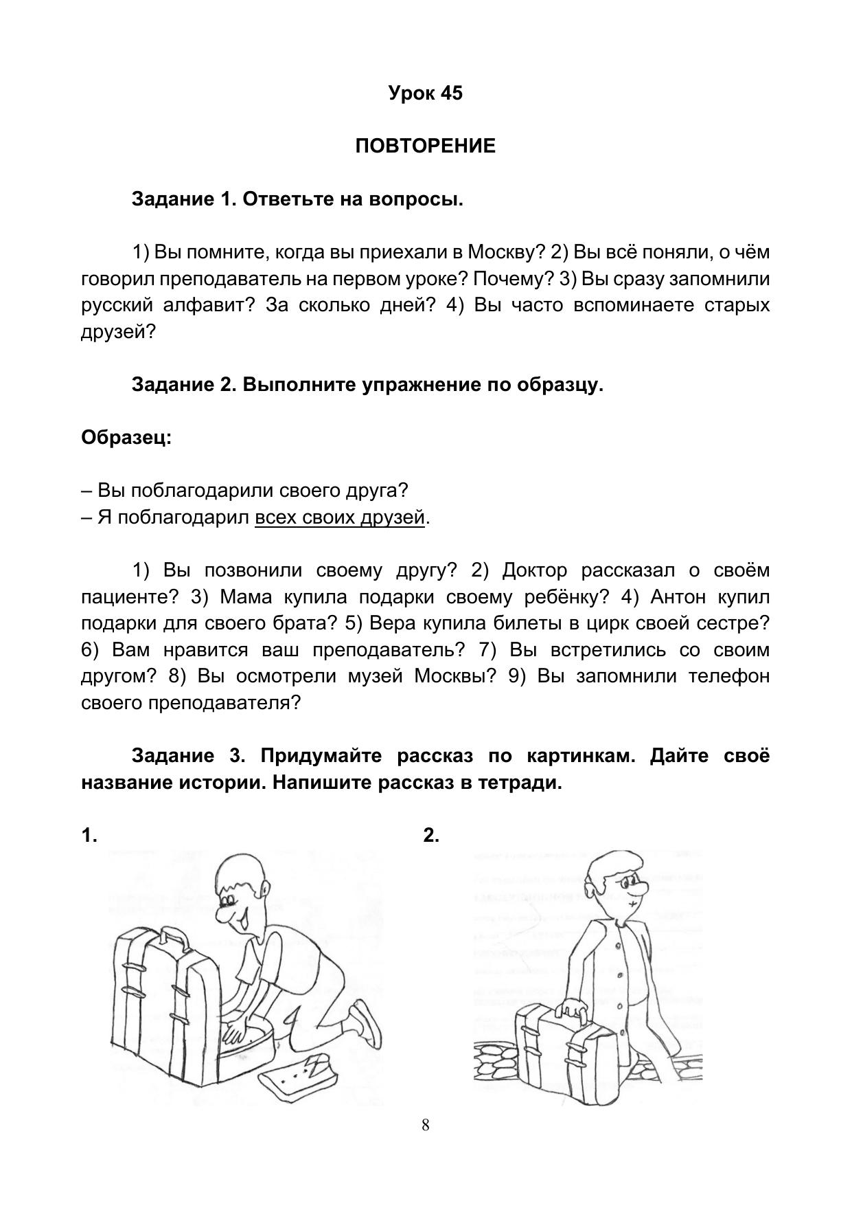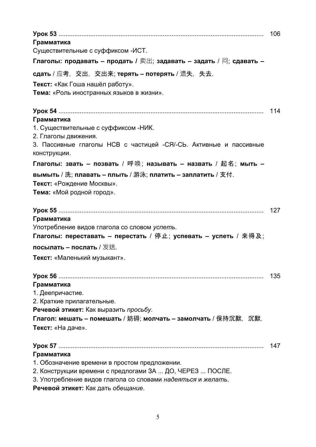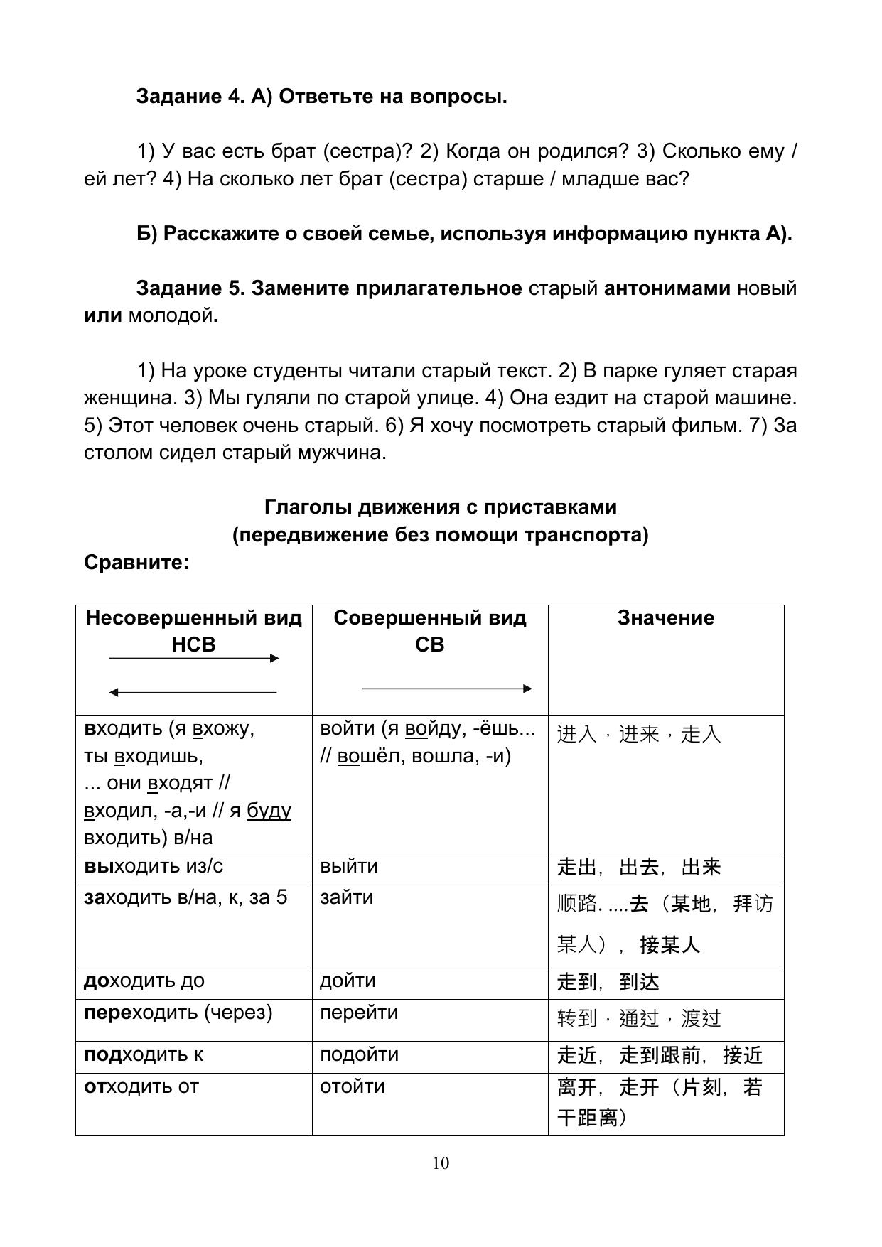 Учебный комплекс включает пособие и рабочую тетрадь, содержащие материал базового уровня владения русским языком как иностранным (В1). В пособии предлагается особая нестандартная организация учебного материала, позволяющая в сжатые сроки усвоить лексику и грамматику и способствующая активизации речевой деятельности учащихся. В пособии реализованы современные подходы к обучению русскому языку иностранцев: интенсивность, коммуникативность, практическая направленность и учёт родного языка. Грамматические комментарии, диалоги, упражнения сопровождаются переводом на китайский язык. По пособию можно работать как с преподавателем, так и самостоятельно. Для студентов, говорящих по-китайски, достигших уровня А2 и желающих продолжить изучение русского языка.