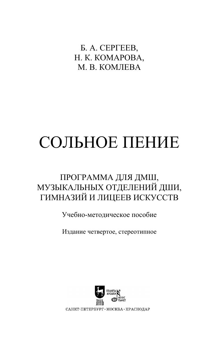 Сольное пение. Программа для ДМШ, музыкальных отделений ДШИ, гимназий и лицеев искусств