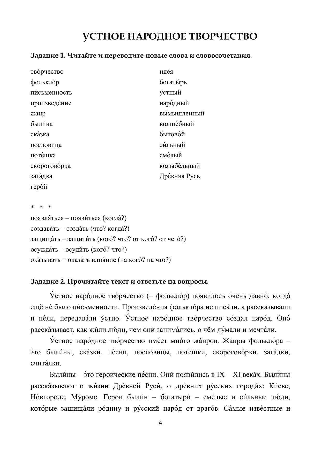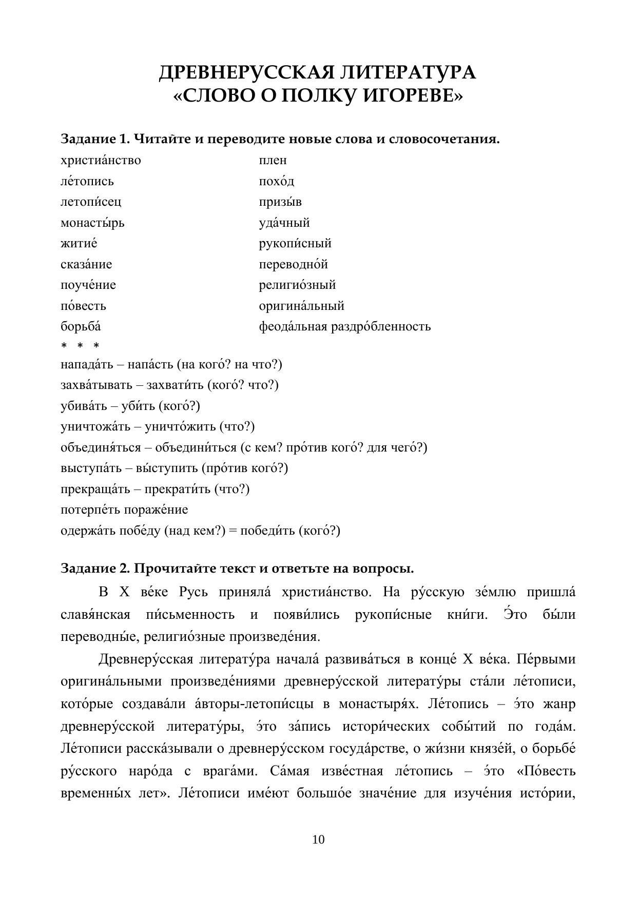 Учебно-методическое пособие содержит материал по истории русской литературы: оно включает тексты о жизни и творчестве русских писателей и поэтов, вопросы и задания к ним, а также адаптированные и неадаптированные произведения художественной литературы разных жанров.
