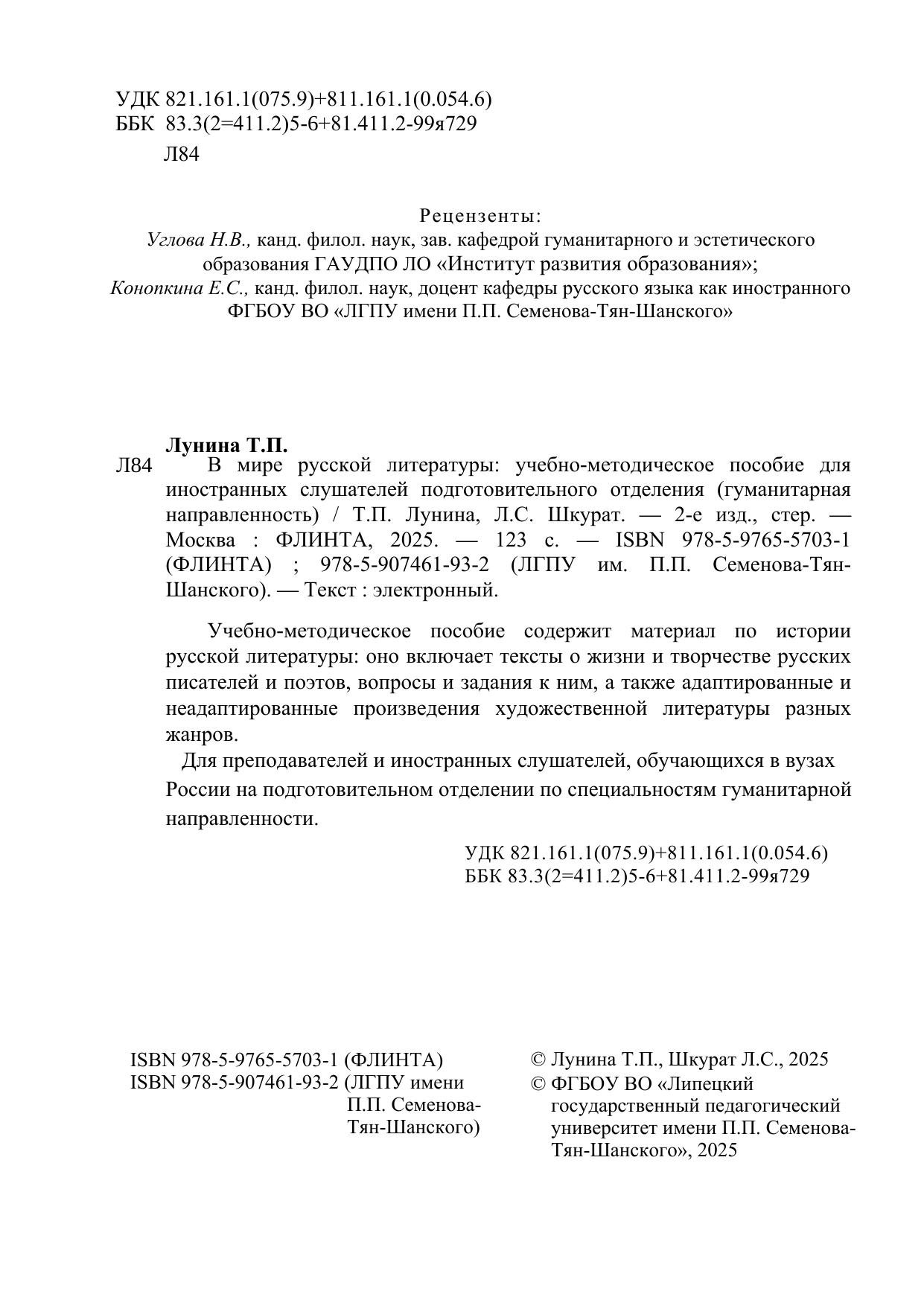 Авторы: Лунина Т. П., Шкурат Л. С.