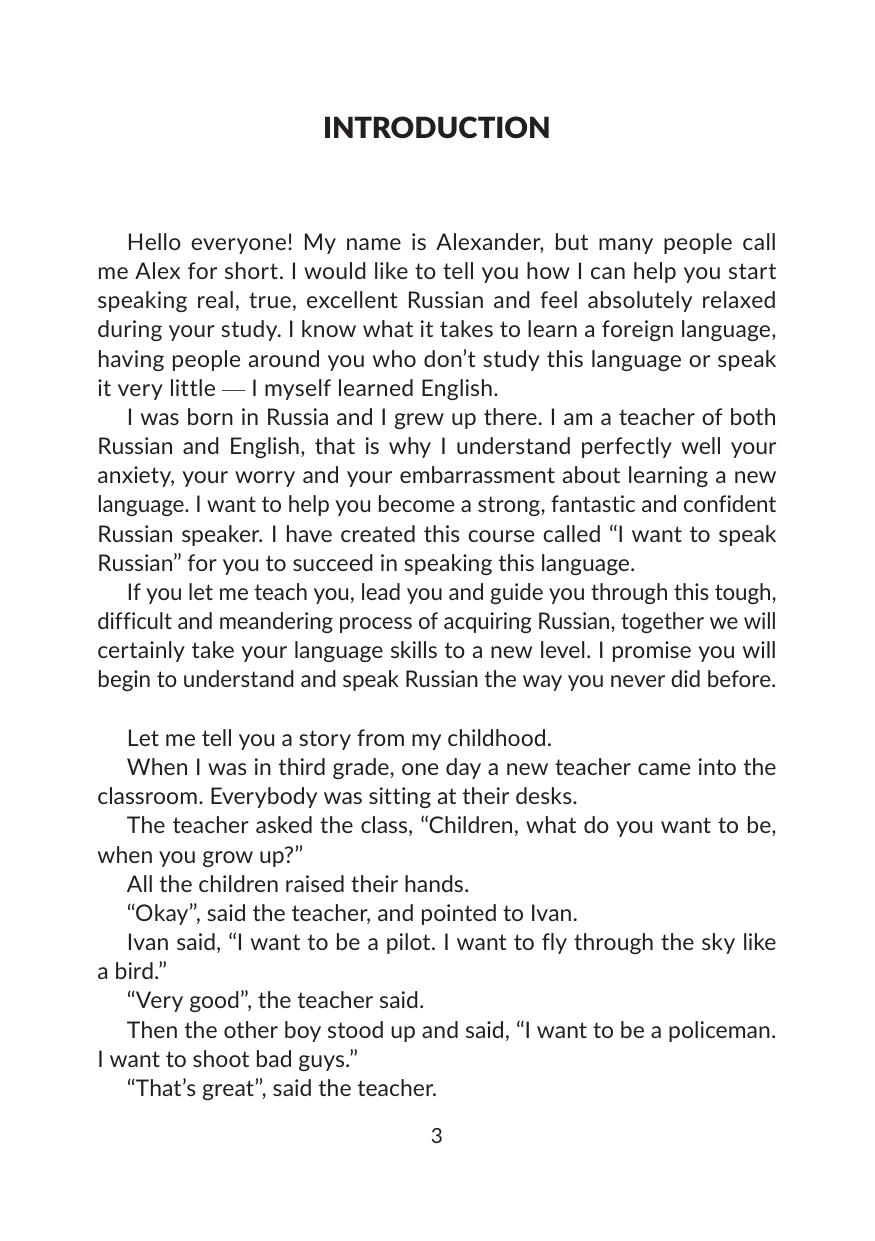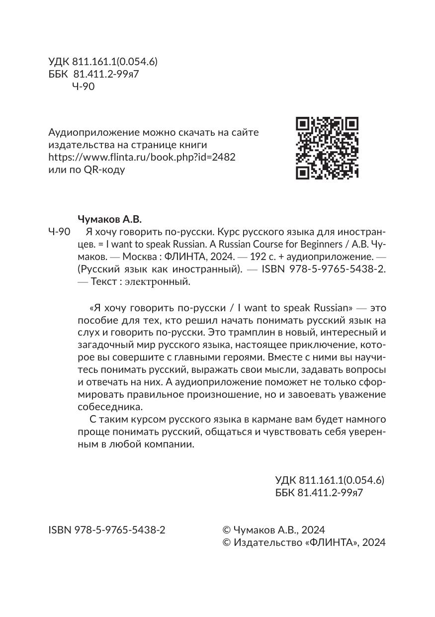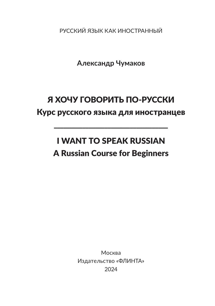 «Я хочу говорить по-русски / I want to speak Russian» — это пособие для тех, кто решил начать понимать русский язык на слух и говорить по-русски. Это трамплин в новый, интересный и загадочный мир русского языка, настоящее приключение, которое вы совершите с главными героями. Вместе с ними вы научи-тесь понимать русский, выражать свои мысли, задавать вопросы и отвечать на них. А аудиоприложение поможет не только сформировать правильное произношение, но и завоевать уважение собеседника.