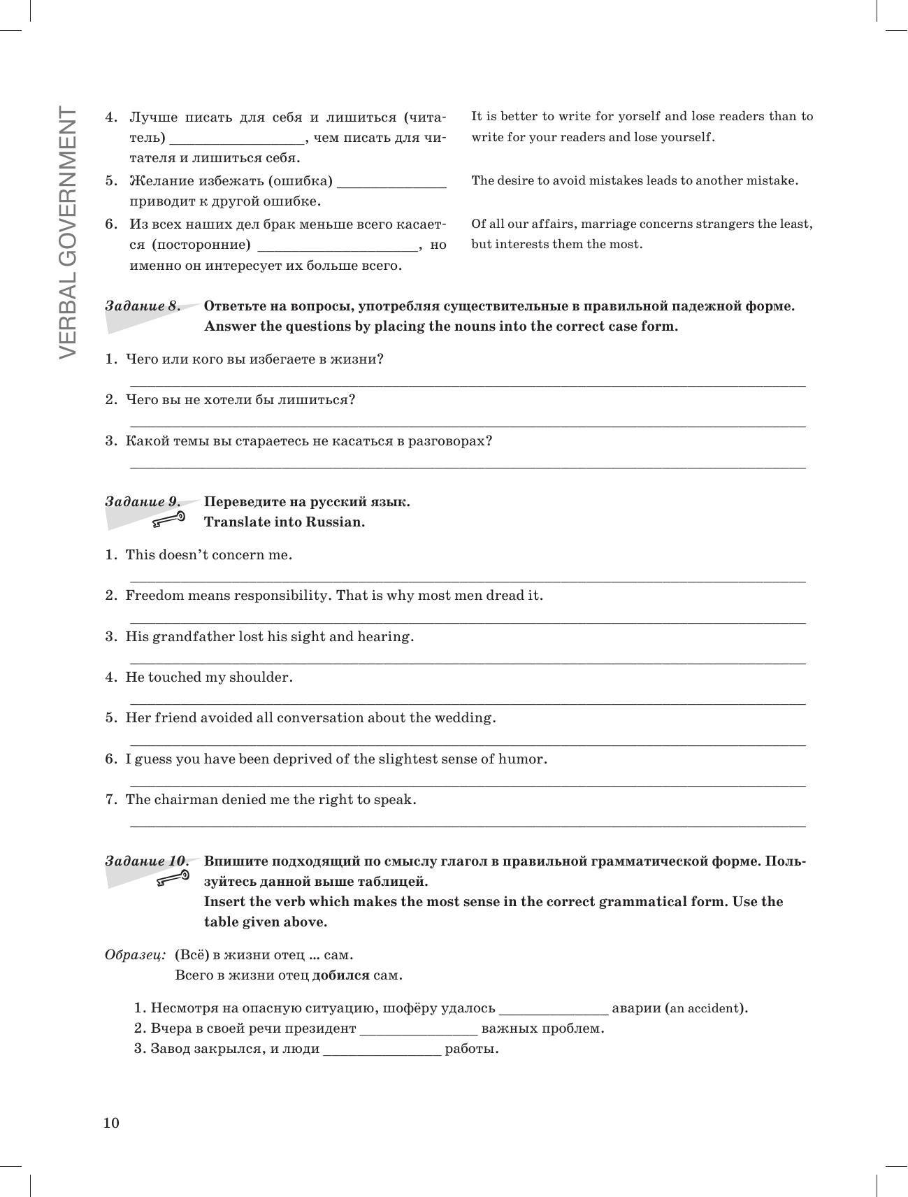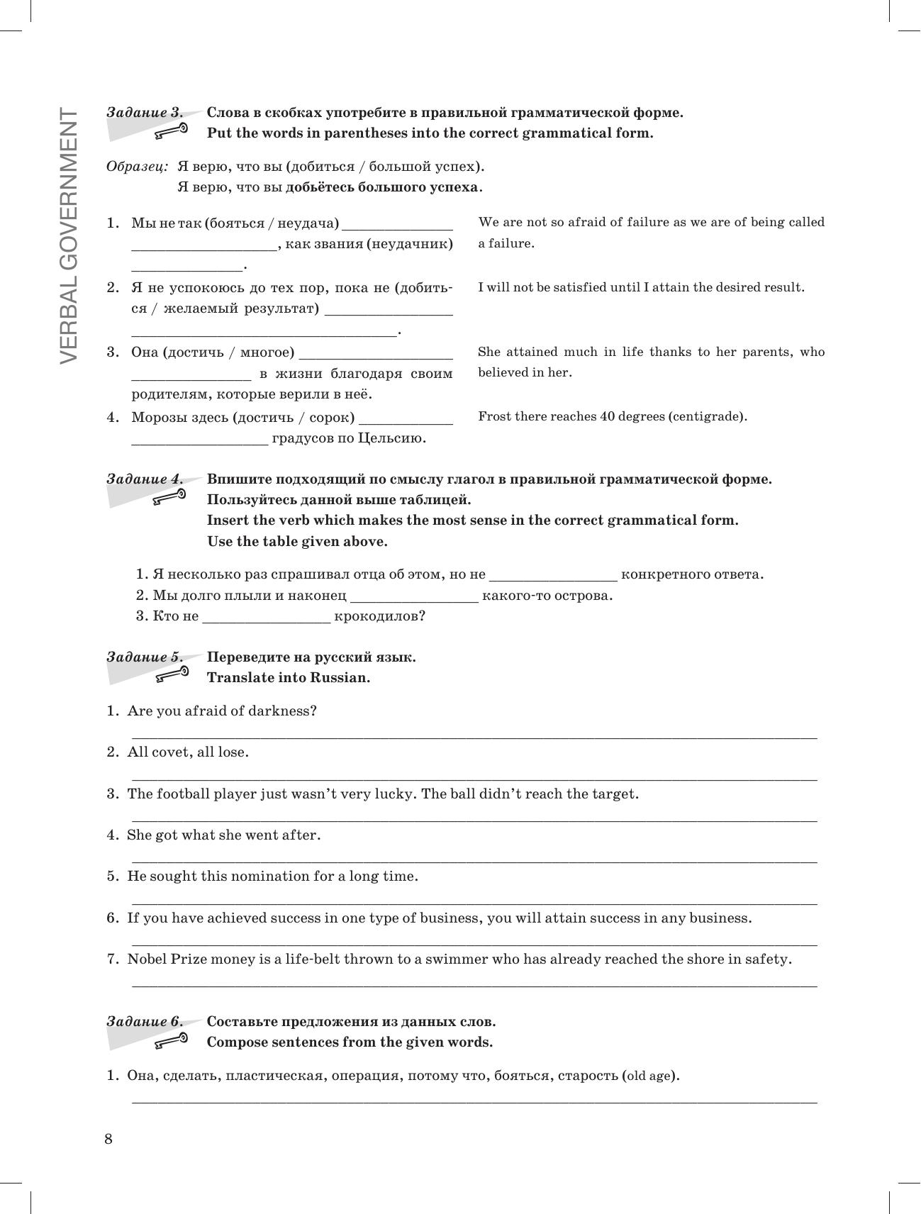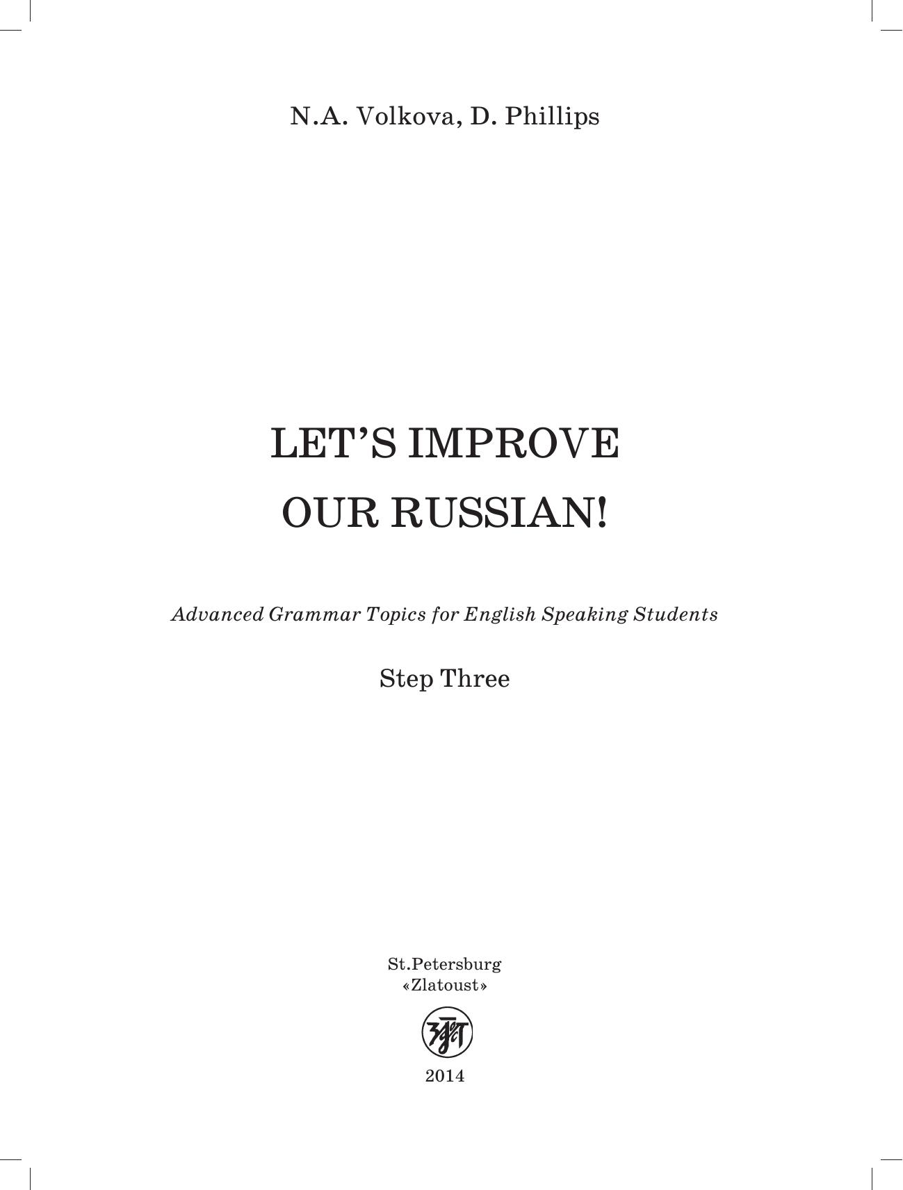 Практическое пособие по русской грамматике предназначено для иностранцев, изучающих язык, как с преподавателем, так и самостоятельно. Сборник упражнений на такие грамматические темы, как управление глаголов, употребление предлогов, выражение времени и др., поможет систематизировать, значительно расширить и закрепить уже имеющиеся знания по русскому языку, подготовиться к прохождению теста II сертификационного уровня.