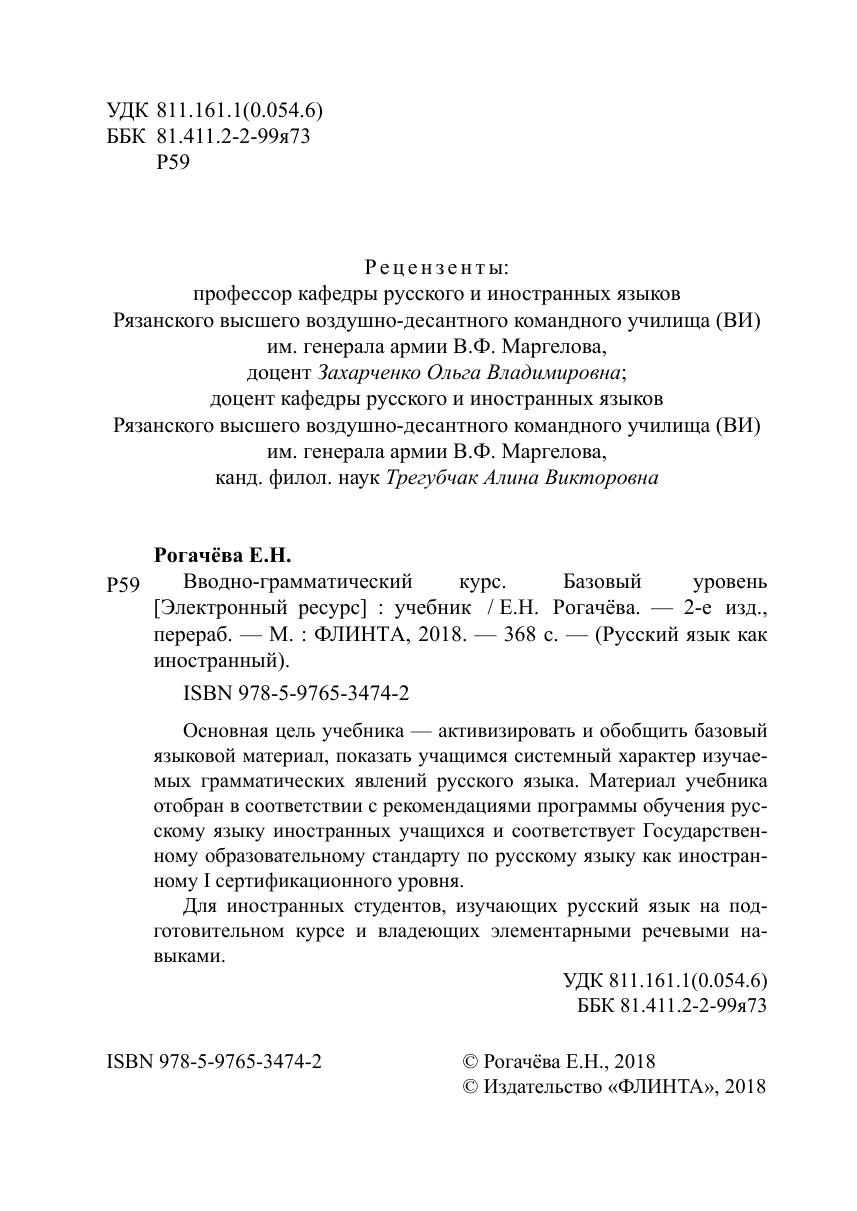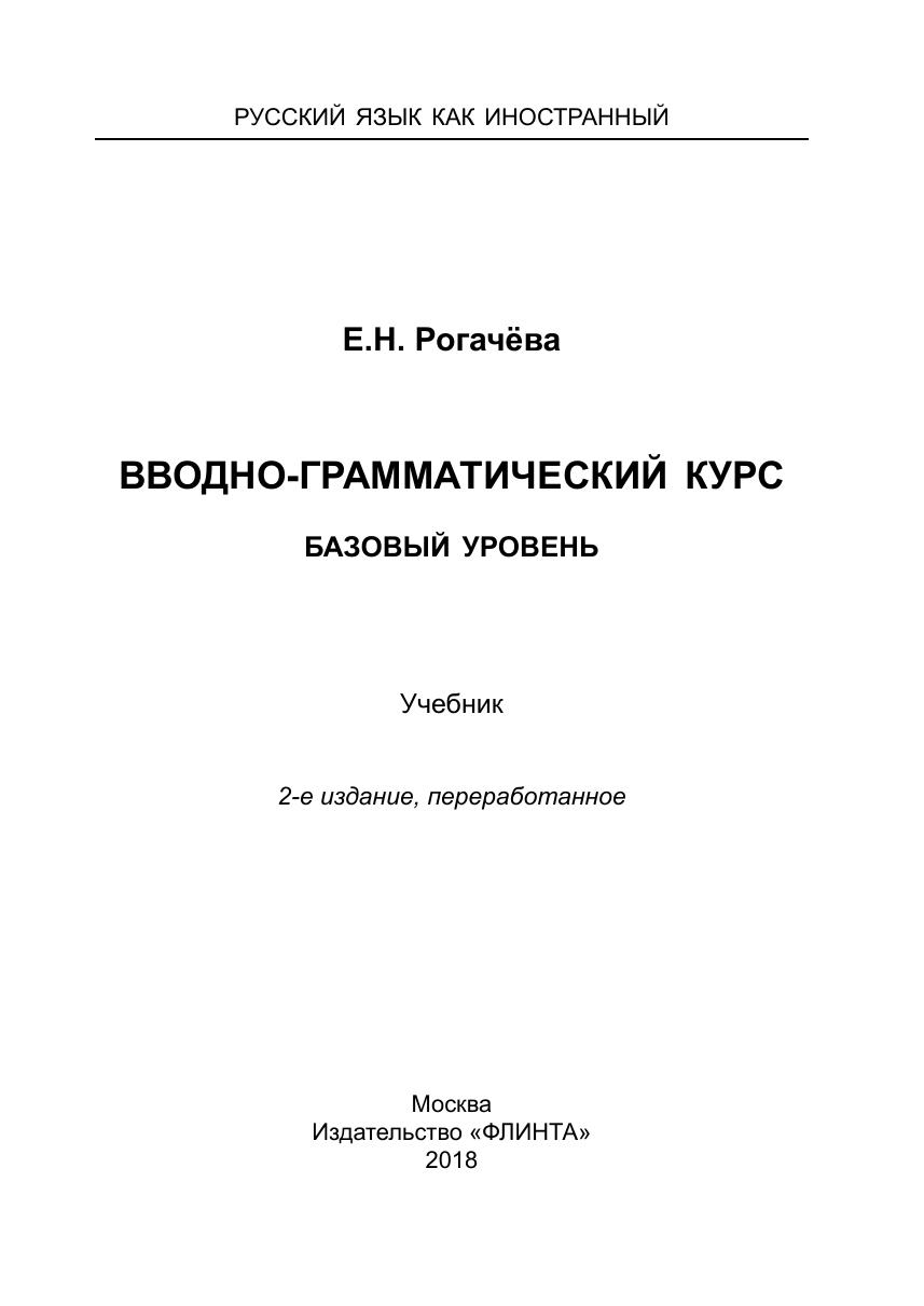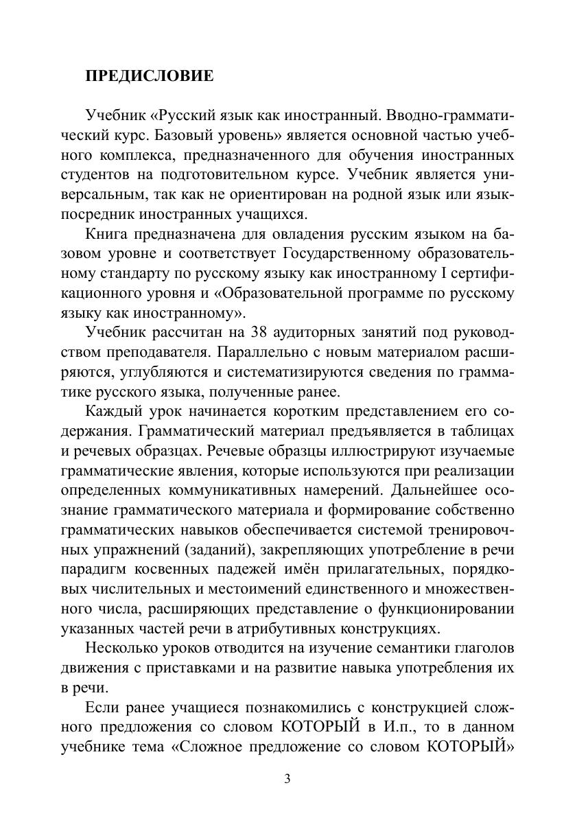 языковой материал, показать учащимся системный характер изучаемых грамматических явлений русского языка. Материал учебника отобран в соответствии с рекомендациями программы обучения русскому языку иностранных учащихся и соответствует Государственному образовательному стандарту по русскому языку как иностранному I сертификационного уровня. Для иностранных студентов, изучающих русский язык на подготовительном курсе и владеющих элементарными речевыми навыками.