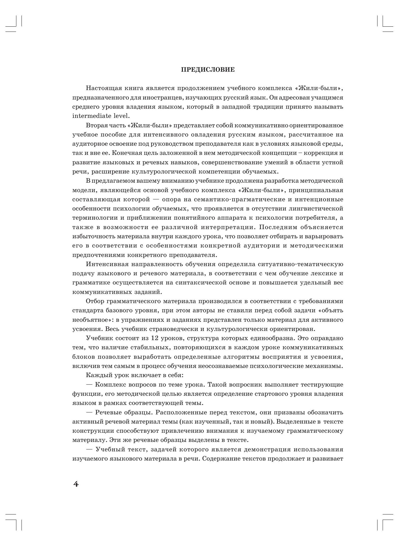 Пособие продолжает интенсивный коммуникативный курс русского языка для взрослых. Оно рассчитано на 100–120 учебных часов. Рекомендуется для работы с преподавателем на курсах в России и за рубежом, для преподавателей отделений российских вузов (группы позднего заезда), для кружков при культурных центрах и народных университетов.
