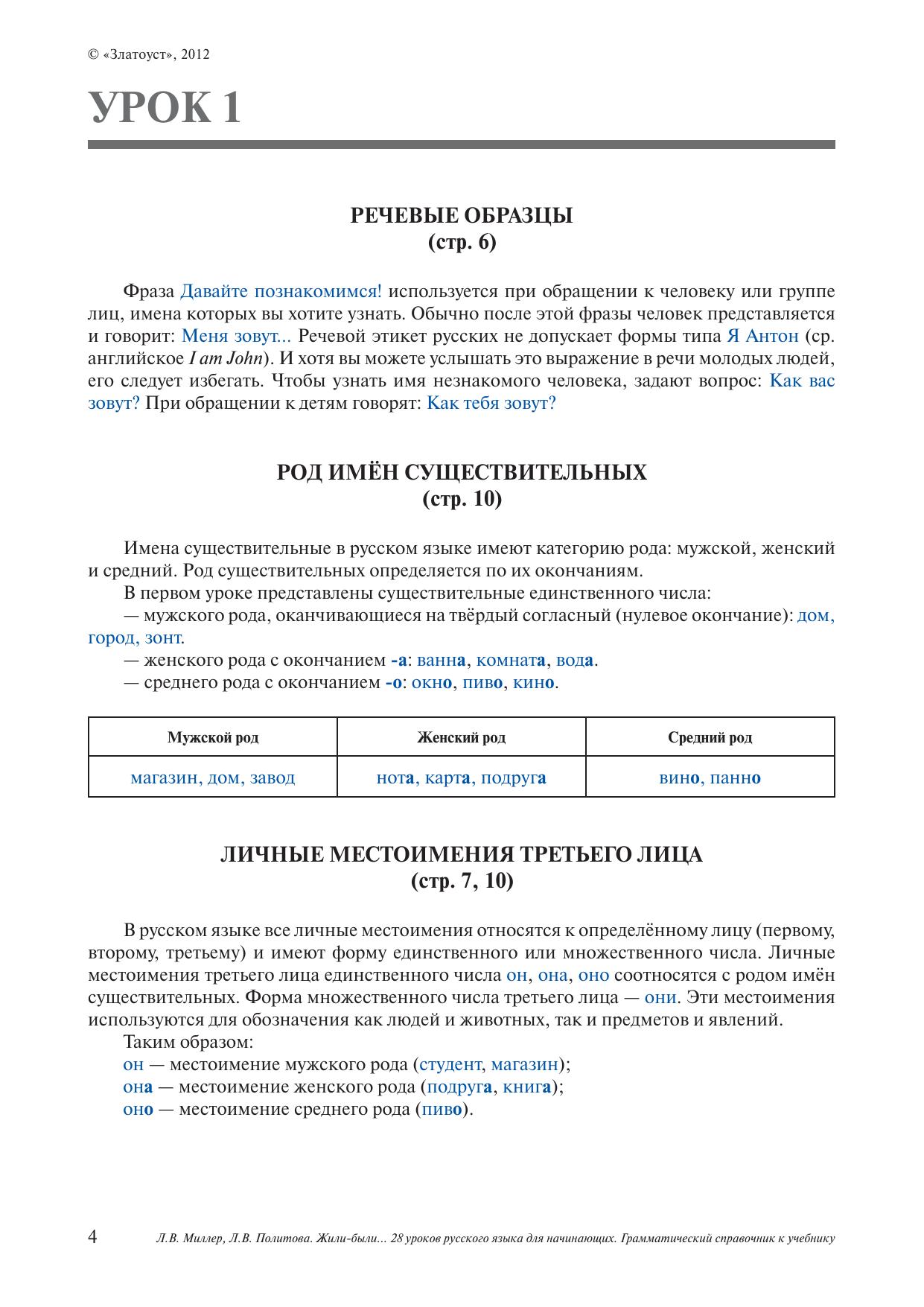 Жили-были... 28 уроков русского языка для начинающих: грамматический справочник к учебнику: русская версия