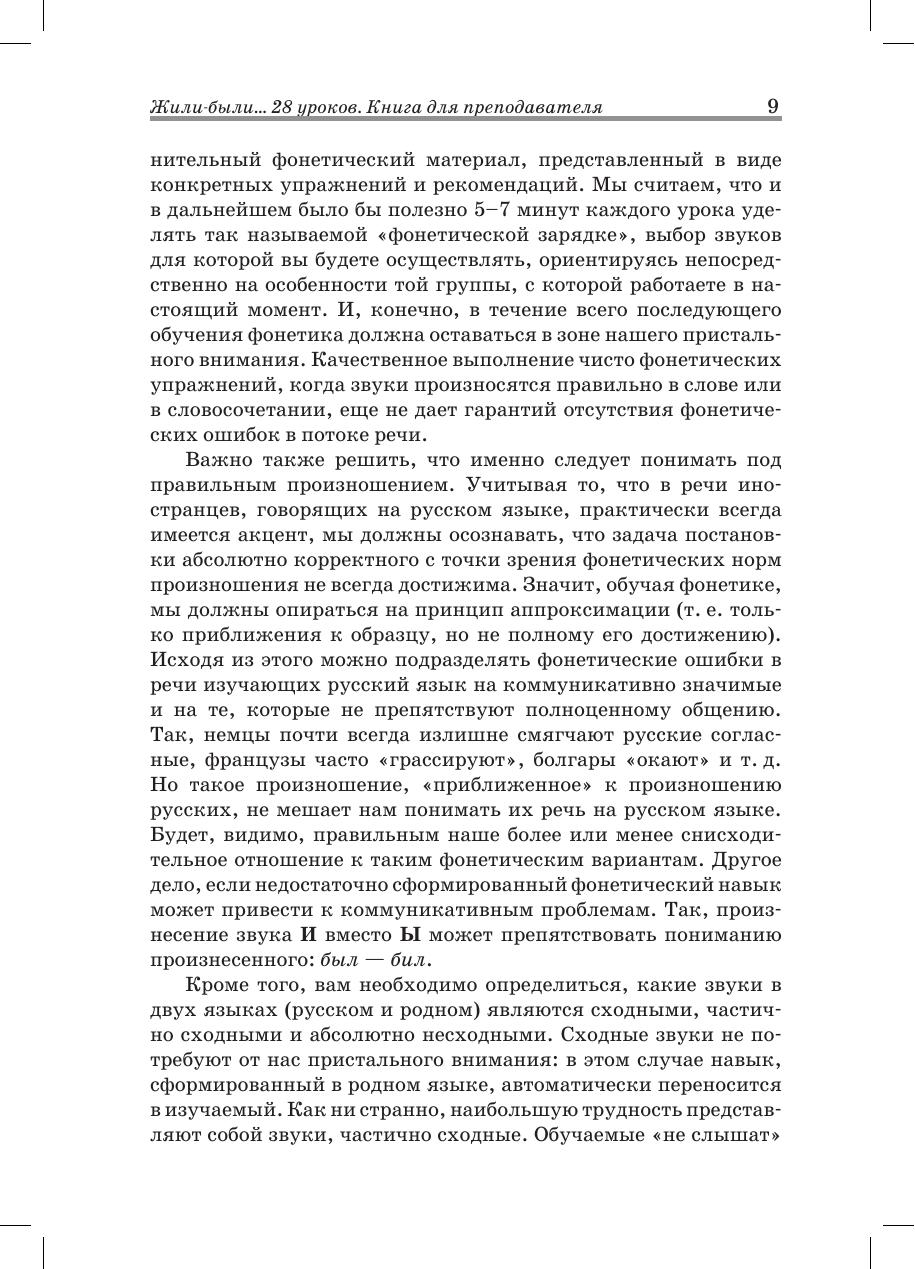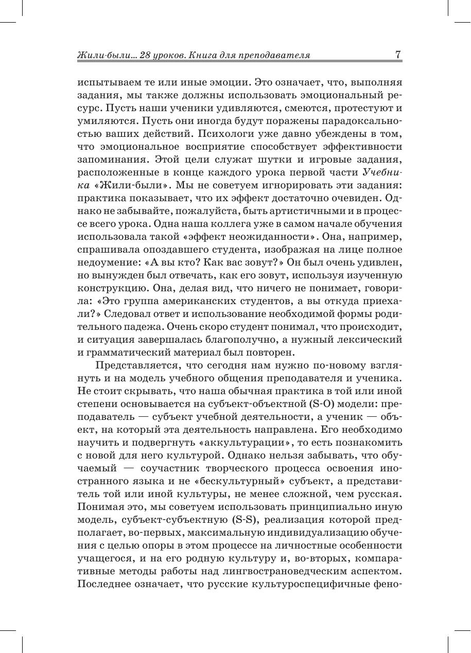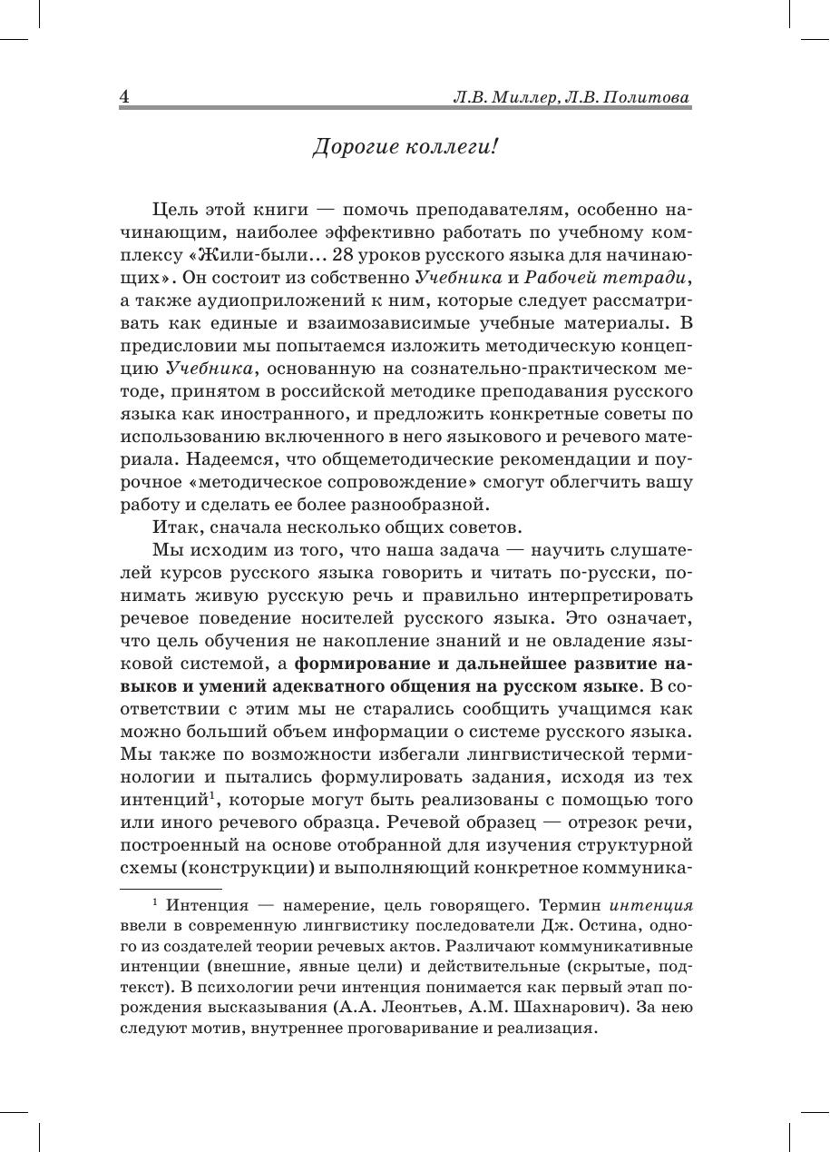 Цель этой книги — помочь преподавателям, особенно начинающим, наиболее эффективно работать по учебному комплексу «Жили-были... 28 уроков русского языка для начинающих». Он состоит из собственно Учебника и Рабочей тетради, а также аудиоприложений к ним, которые следует рассматривать как единые и взаимозависимые учебные материалы. В предисловии мы попытаемся изложить методическую концепцию Учебника, основанную на сознательно-практическом методе, принятом в российской методике преподавания русского языка как иностранного, и предложить конкретные советы по использованию включенного в него языкового и речевого материала. Надеемся, что общеметодические рекомендации и поурочное «методическое сопровождение» смогут облегчить вашу работу и сделать ее более разнообразной.