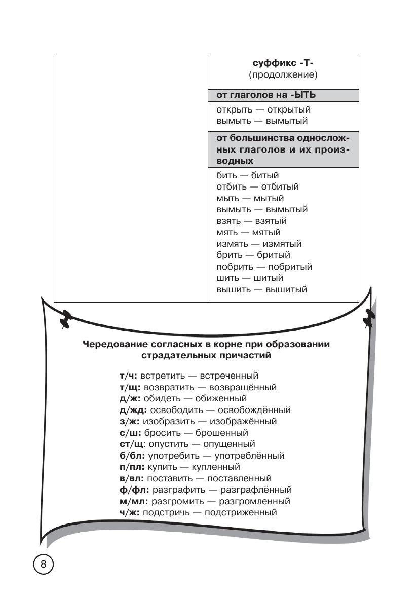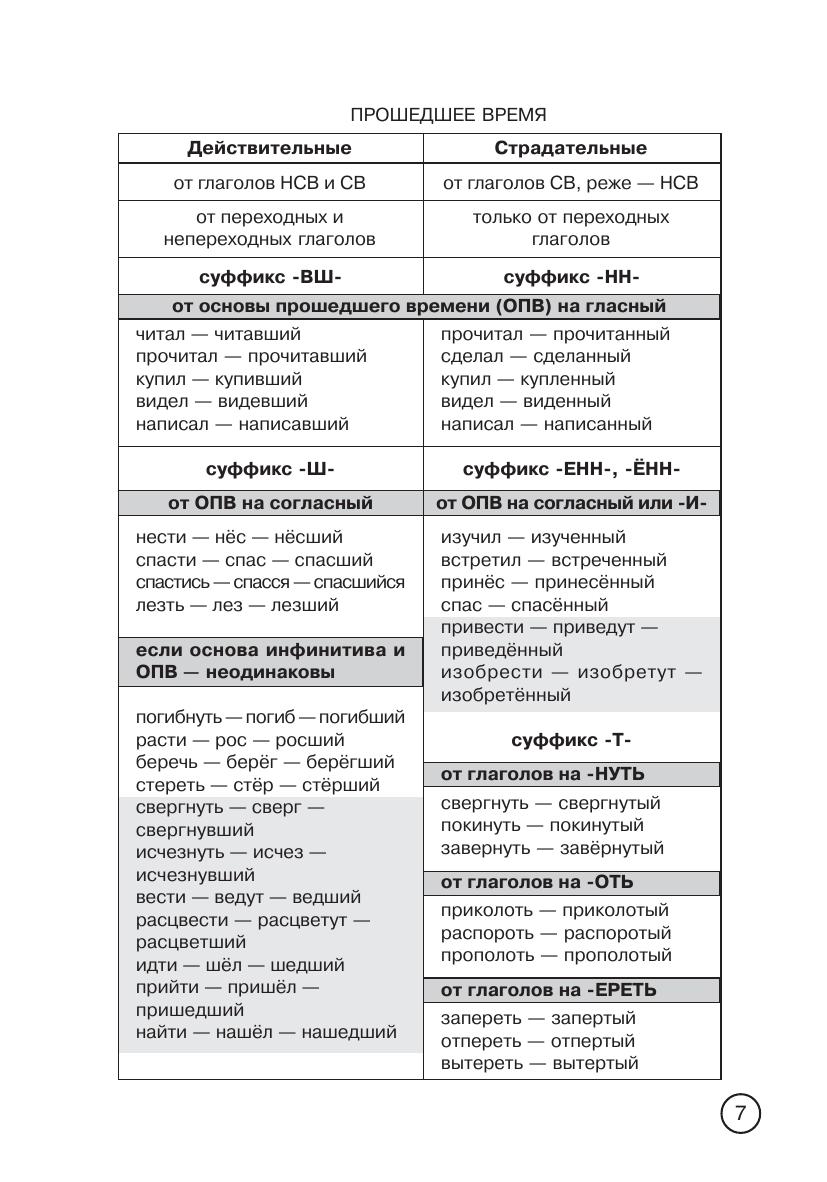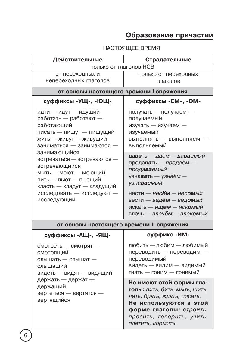 1) образование действительных и страдательных причастий настоящего и прошедшего времени;