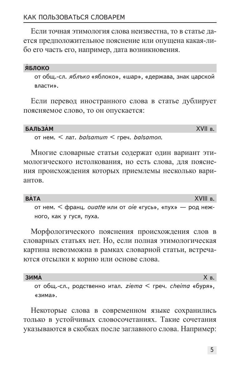 Предлагаемый словарь содержит около 6500 слов с описанием их происхождения и времени появления в русском языке. Издание содержит наглядные словарные статьи, описывающие, как, когда и посредством какого языка то или иное слово проникло в русский язык.