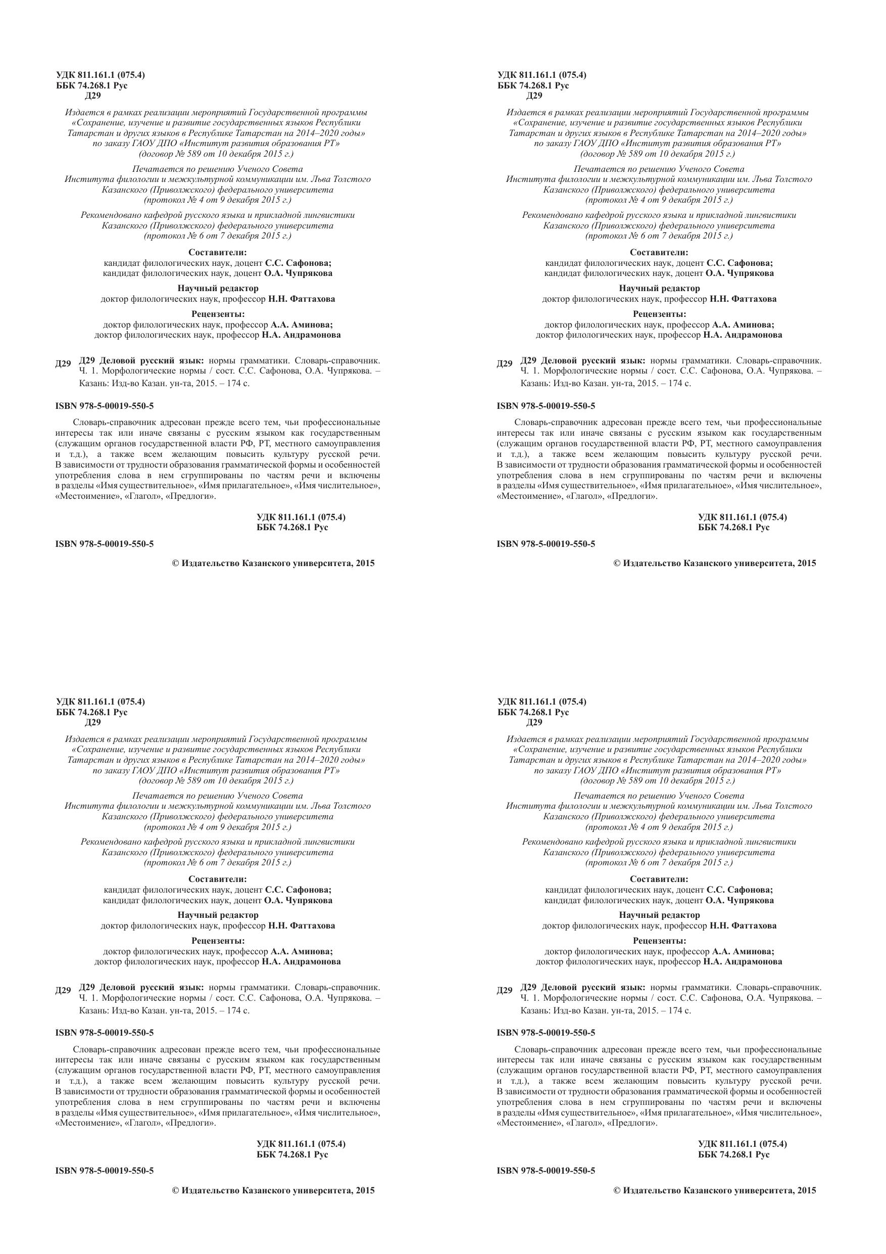 Гриф: Печатается по решению Ученого Совета Института филологии и межкультурной коммуникации им. Льва Толстого Казанского (Приволжского) федерального университета (протокол № 4 от 9 декабря 2015 г.) Рекомендовано кафедрой русского языка и прикладной лингвистики Казанского (Приволжского) федерального университета (протокол № 6 от 7 декабря 2015 г.)