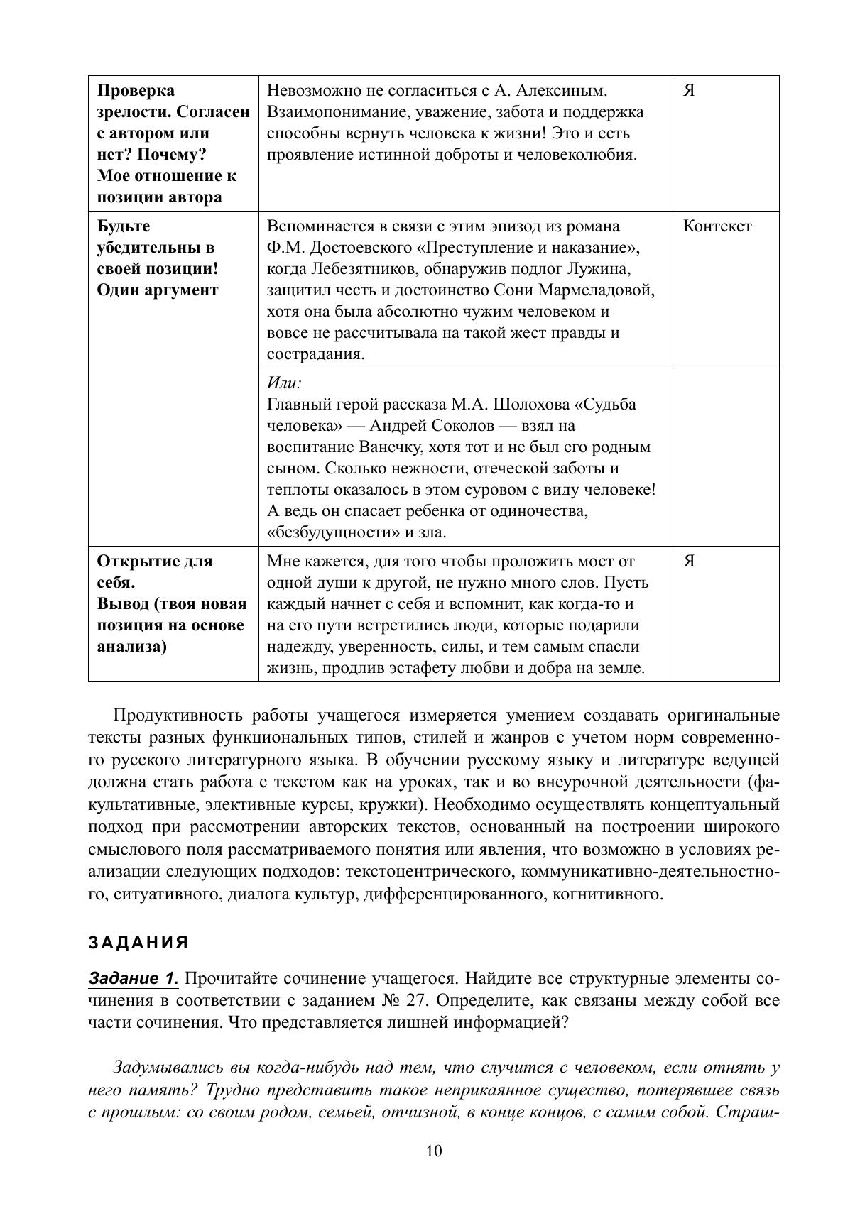 В издании представлены стратегии и технологии информационной обработки текста, позволяющие безошибочно определить проблемное поле текста, позицию автора, создать комментарий на основе анализа и интерпретации прочитанного. В пособии предлагаются варианты написания развернутого ответа (сочинения) на основе художественных и публицистических текстов. Оно содержит разнообразный методический материал, который поможет учащимся понять, как взаимосвязаны между собой структурные компоненты сочинения, как исправить речевые и грамматические ошибки в своих работах. Кроме того, приводятся примеры оценивания работ учащихся, что повышает уровень профессиональной компетенции учителей русского языка и литературы в области экспертной оценки сочинения.
