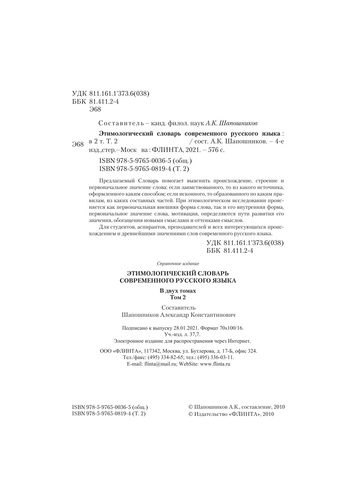Этимологический словарь современного русского языка: в 2 т.: т.2