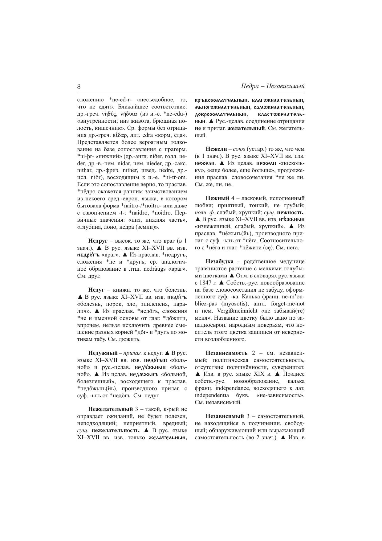 Предлагаемый Словарь помогает выяснить происхождение, строение и первоначальное значение слова: если заимствованного, то из какого источника, оформленного каким способом; если исконного, то образованного по каким правилам, из каких составных частей. При этимологическом исследовании проясняется как первоначальная внешняя форма слова, так и его внутренняя форма, первоначальное значение слова, мотивация, определяются пути развития его значения, обогащения новыми смыслами и оттенками смыслов. Для студентов, аспирантов, преподавателей и всех интересующихся происхождением и древнейшими значениями слов современного русского языка.