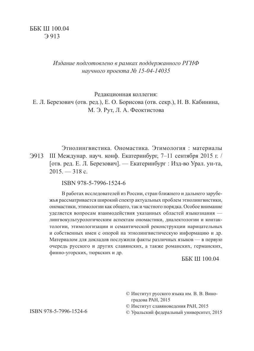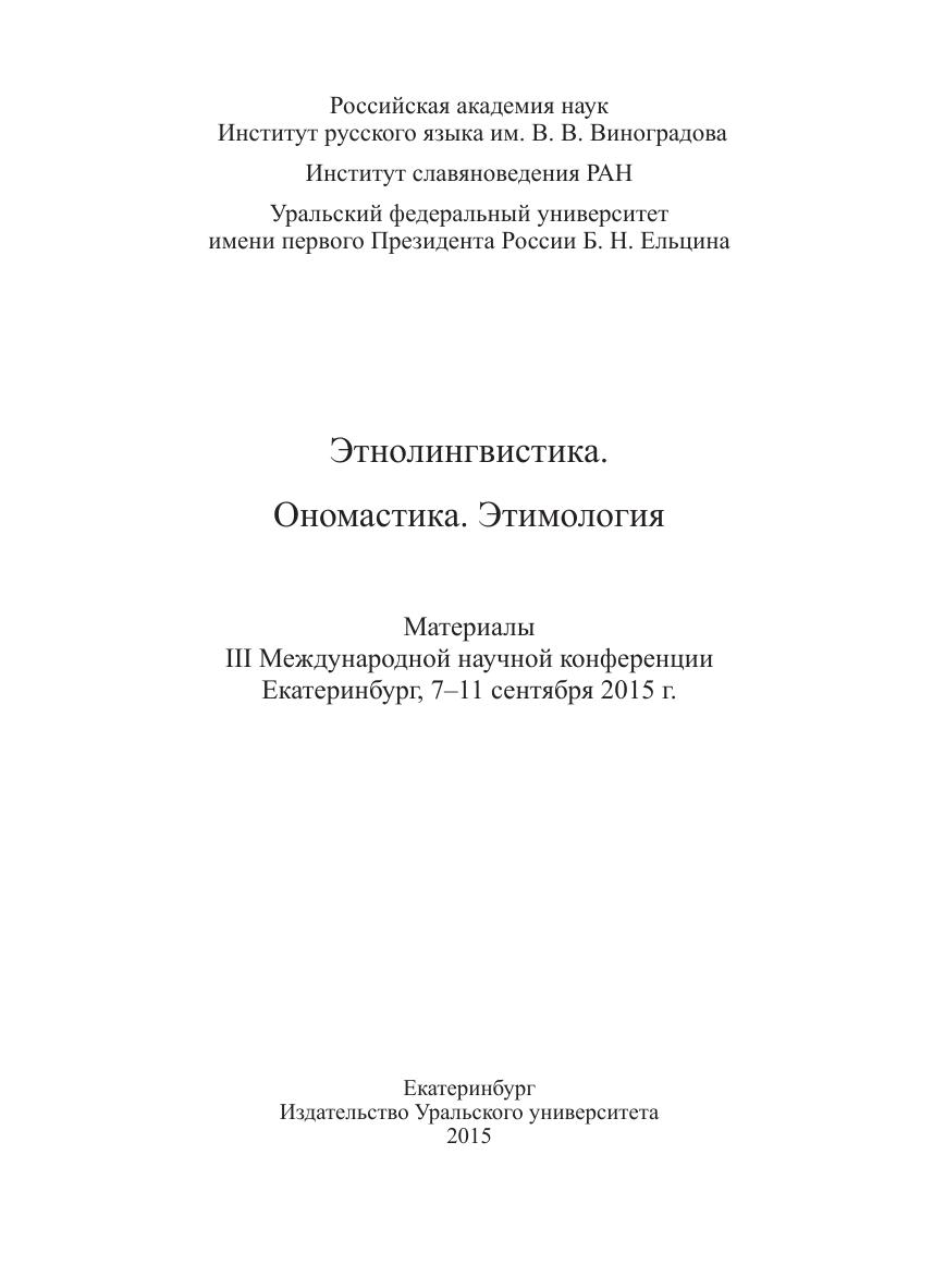 Этнолингвистика. Ономастика. Этимология: материалы III Междунар. науч. конф. Екатеринбург, 7–11 сентября 2015 г.