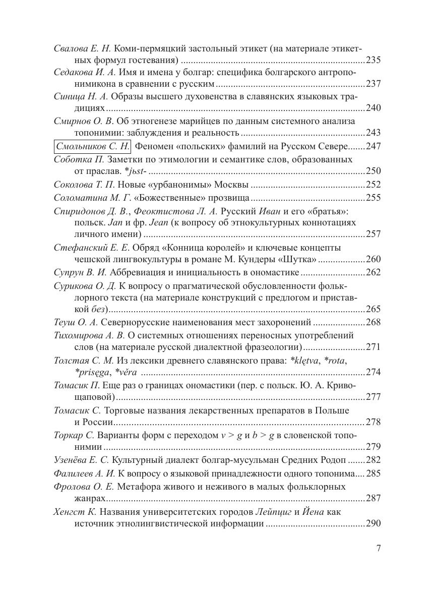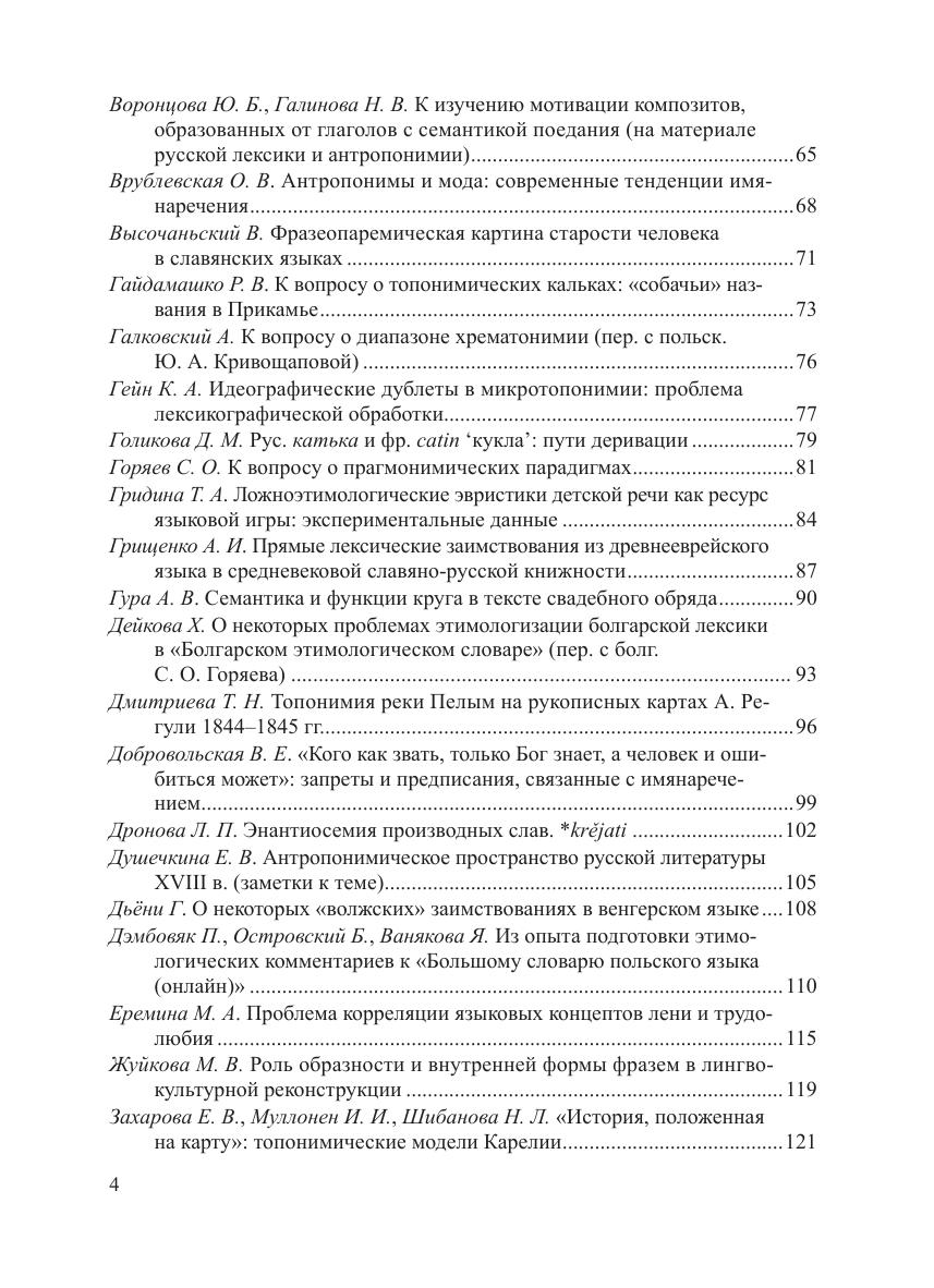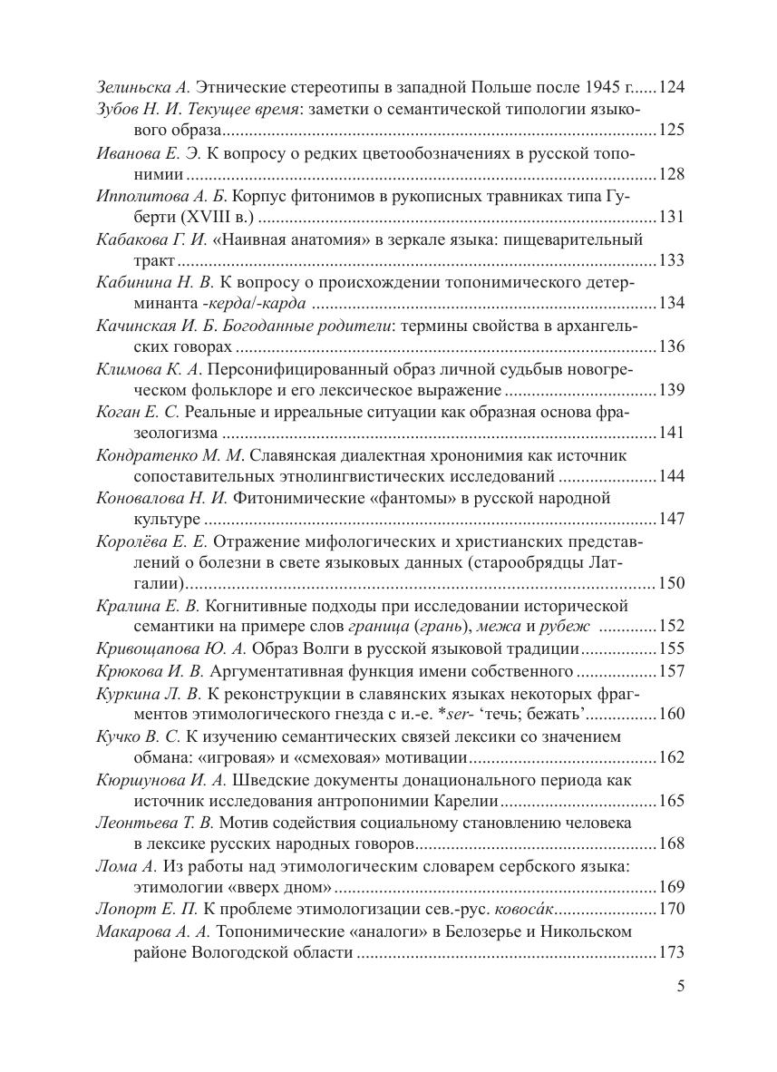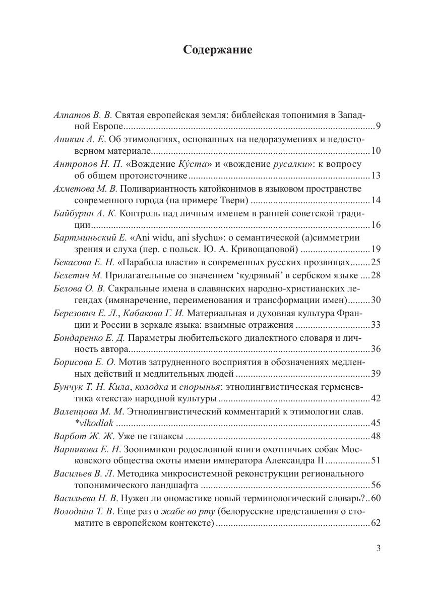 В работах исследователей из России, стран ближнего и дальнего зарубежья рассматривается широкий спектр актуальных проблем этнолингвистики, ономастики, этимологии как общего, так и частного порядка. Особое внимание уделяется вопросам взаимодействия указанных областей языкознания — лингвокультурологическим аспектам ономастики, диалектологии и контактологии, этимологизации и семантической реконструкции нарицательных и собственных имен с опорой на этнолингвистическую информацию и др. Материалом для докладов послужили факты различных языков — в первую очередь русского и других славянских, а также романских, германских, финно-угорских, тюркских и др